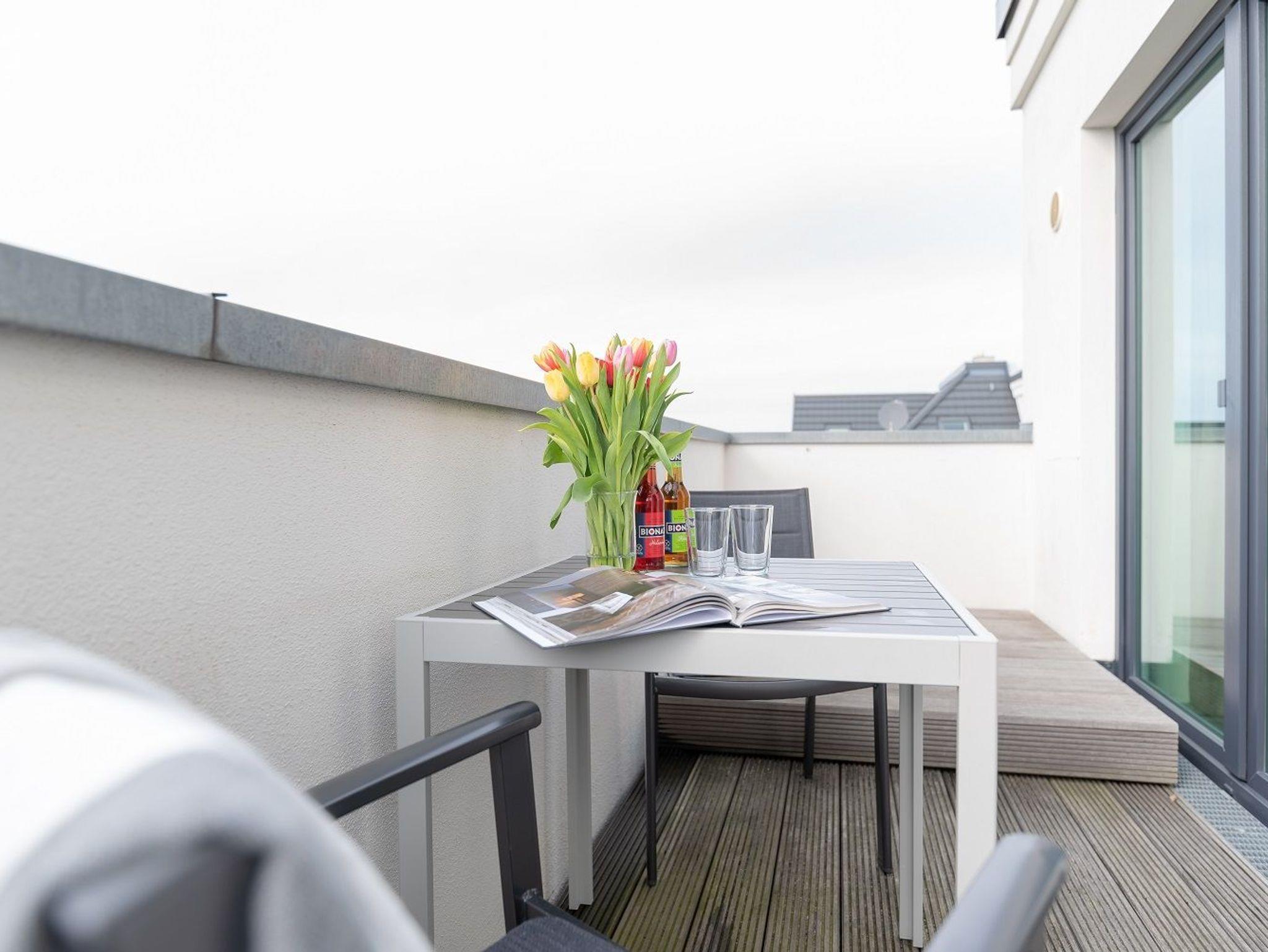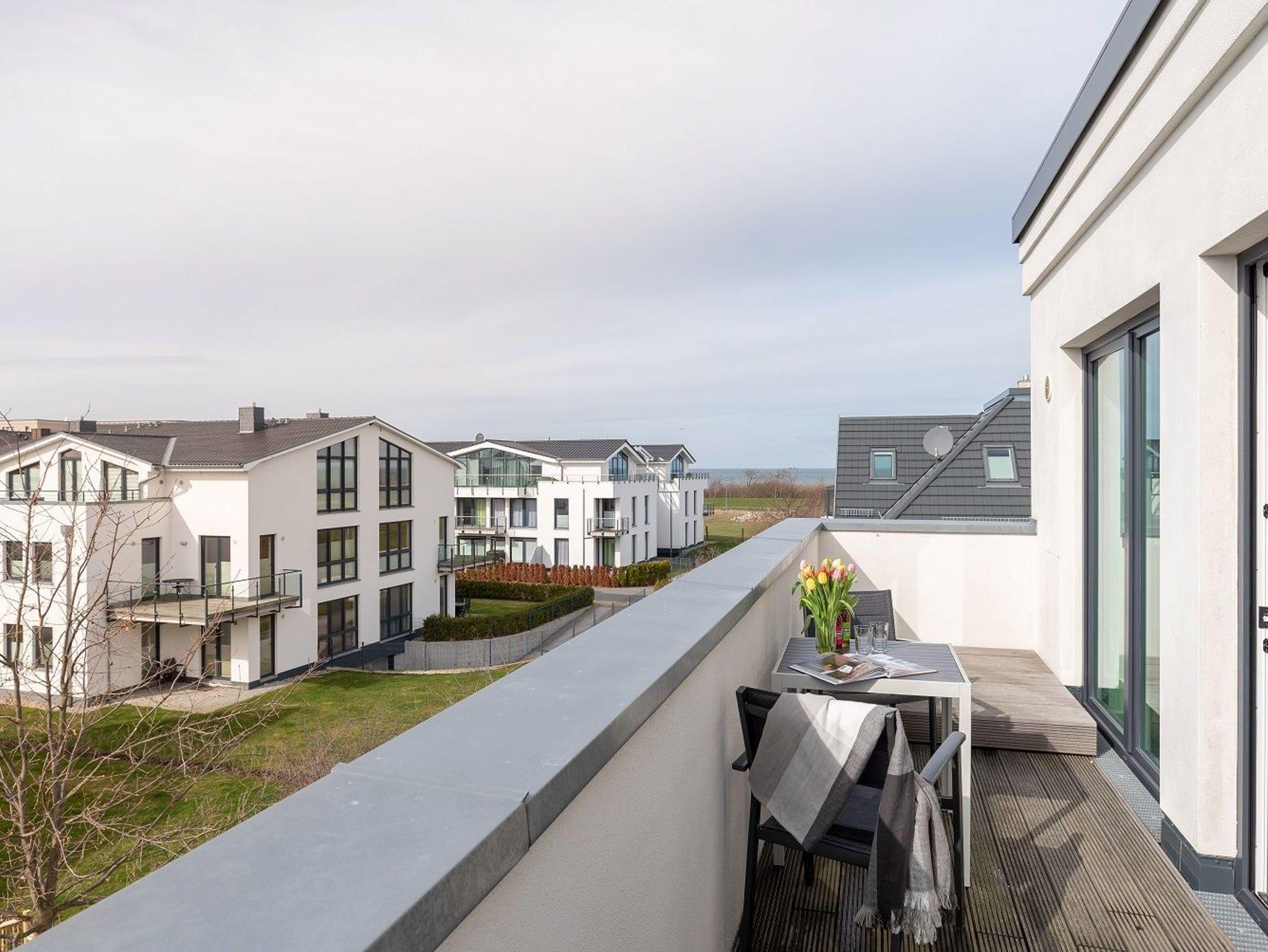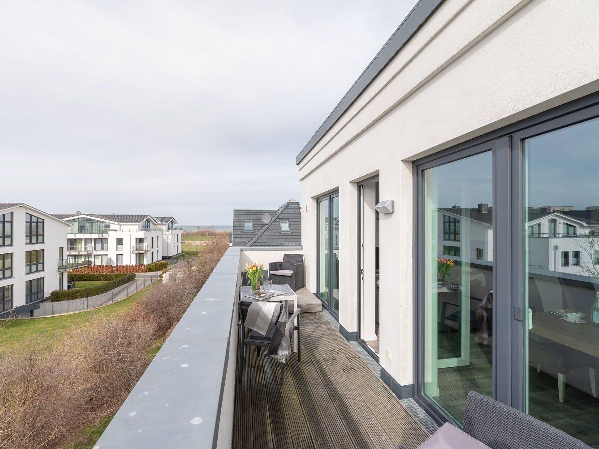 Penthouse-Wohnung mit zwei Balkonen und Meerblick in Börgerende-Rethwisch.