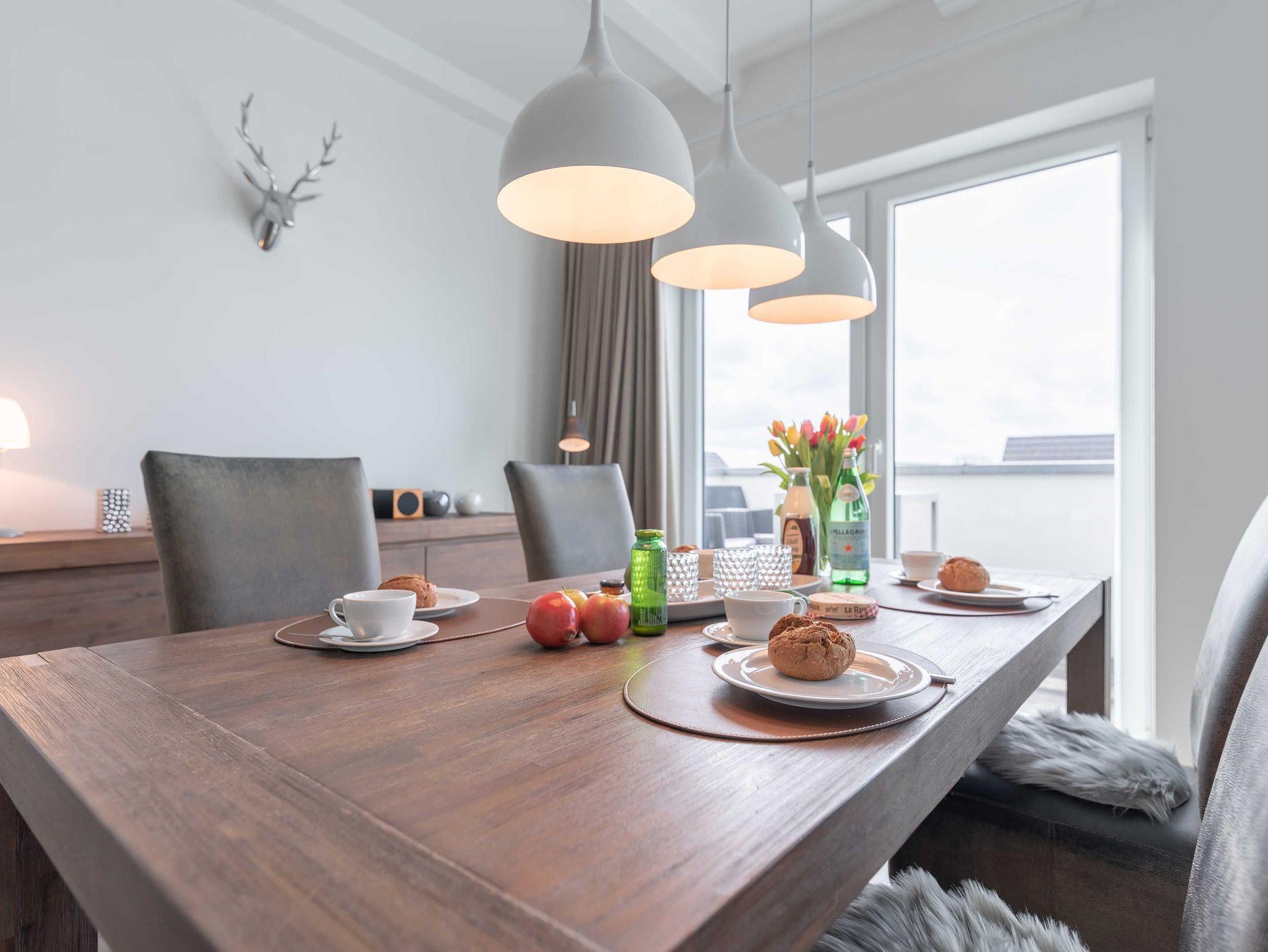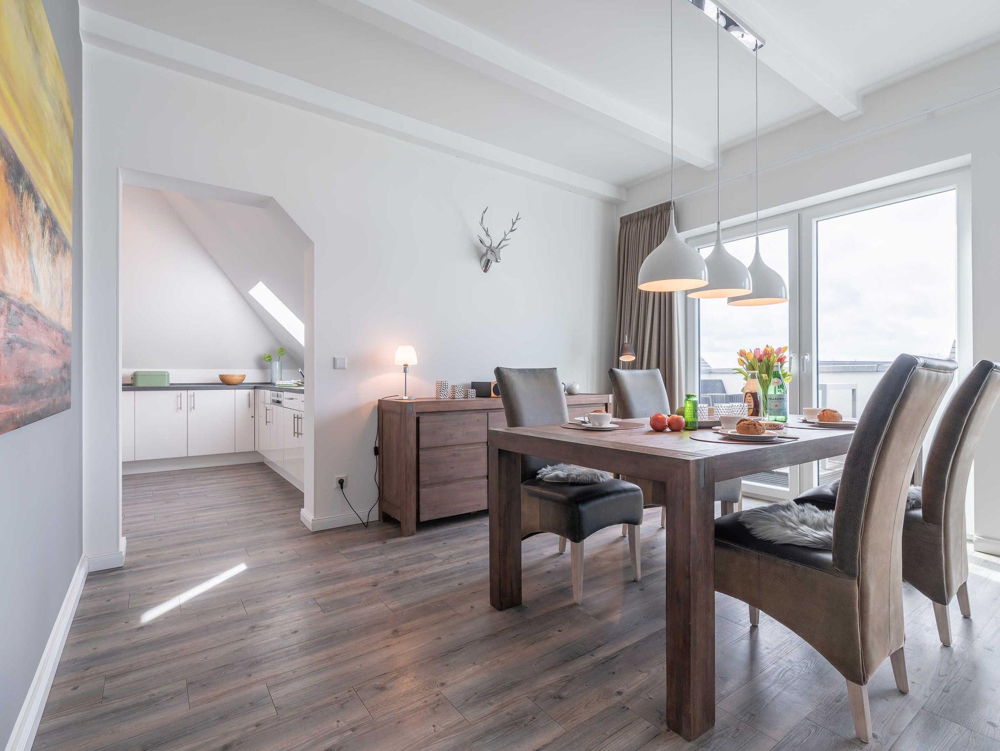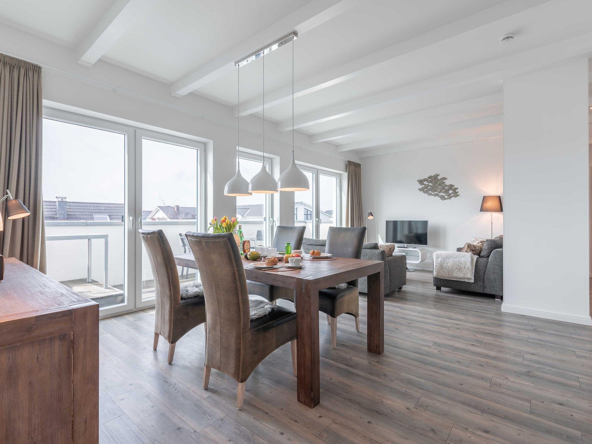 Penthouse-Wohnung mit zwei Balkonen und Meerblick in Börgerende-Rethwisch.