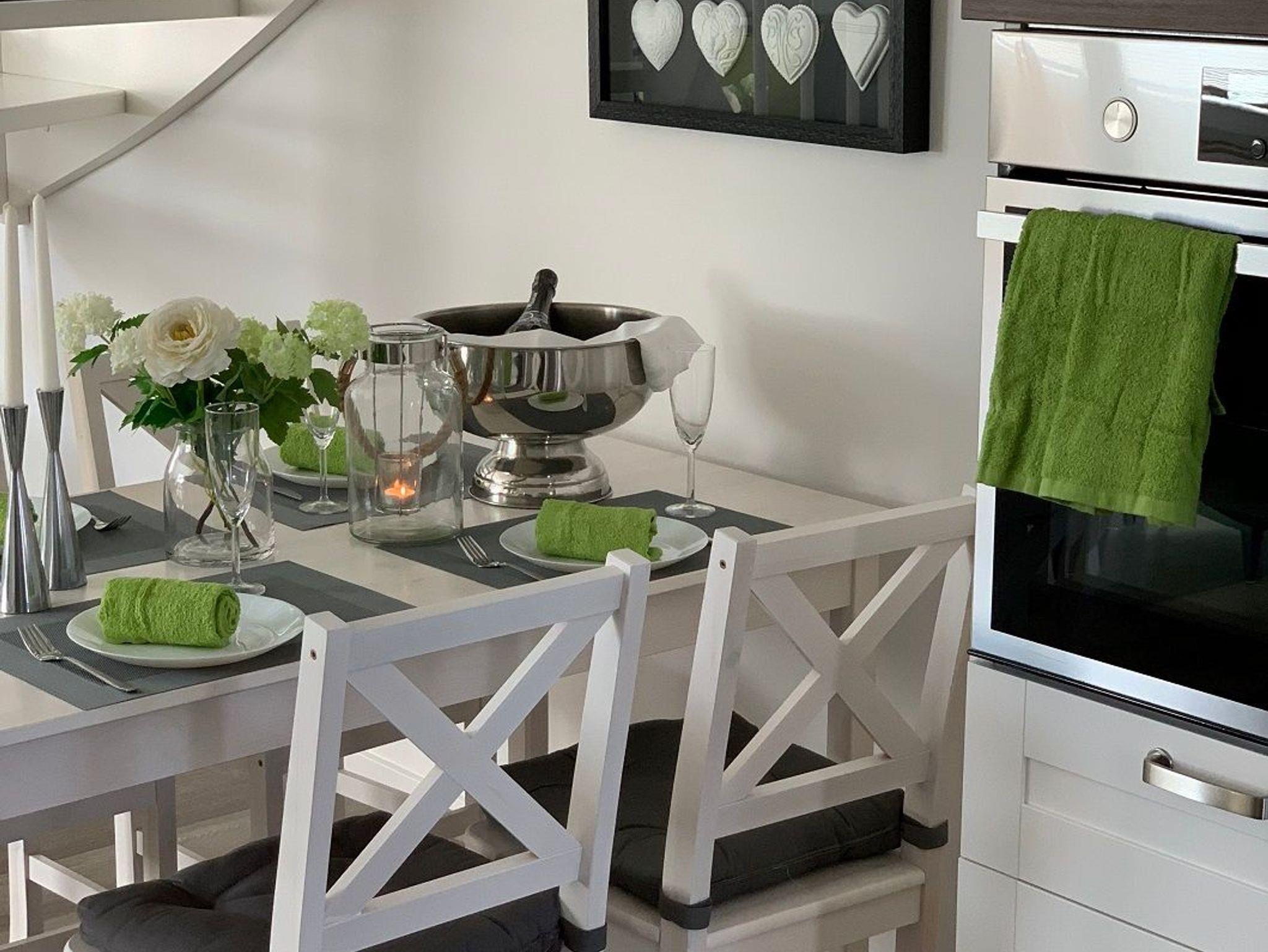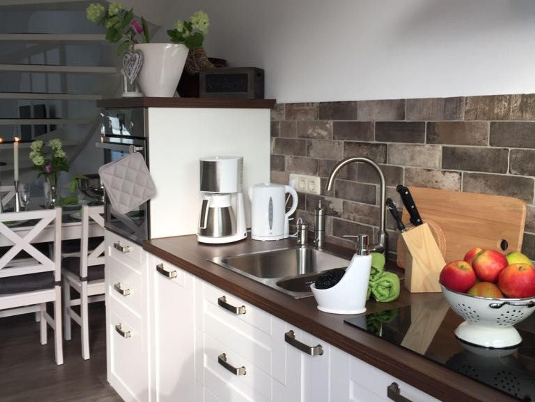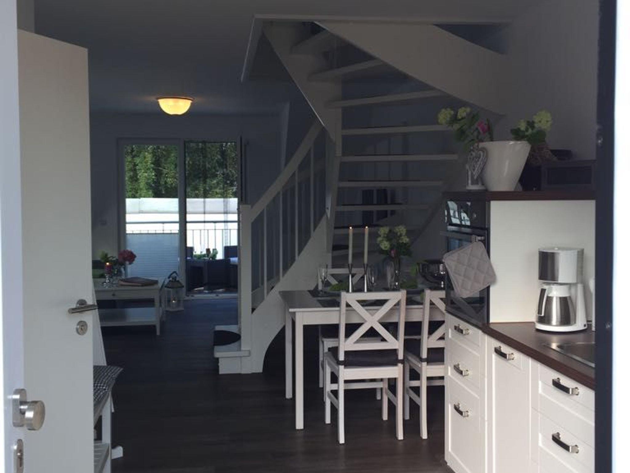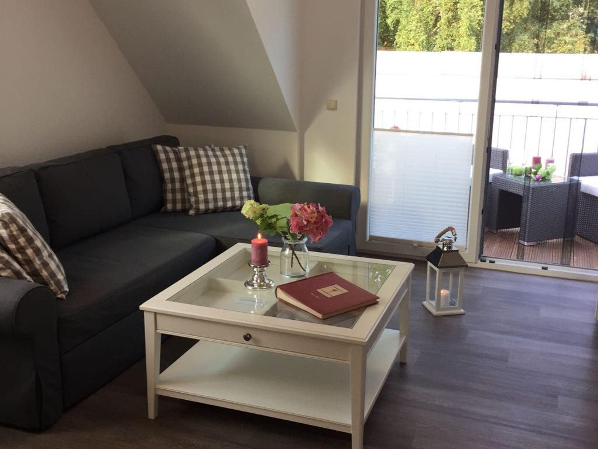 Das lichtdurchflutete Wohnzimmer mit Wohnküche ist mit einem gemütlichen Schlafsofa (Liegefläche 1,40 x 2,00 m) ausgestattet. Die große TV-Anlage mit Radio versüßt die nicht ganz so schönen Tage und eignet sich perfekt um Urlaubsbilder anzuschauen. Bei schönem Wetter lockt der West-Balkon mit entsprechenden Möbeln. Im Dachgeschoss befindet sich das Schlafzimmer mit Blick auf das Naturschutzgebiet Conventer See. Das große Doppelbett mit einer Liegefläche von 1,80 x 2,00 m ist in zwei einzelne Matratzen unterteilt. Im Zimmer befindet sich zudem eine Steckdose mit USB Aufladestation. Die offene Einbauküche ist mit Elektroherd, Backofen, Ceranfeld, Geschirrspüler, Kühlschrank mit Gefrierfach, Kaffeemaschine, Wasserkocher, Toaster und Geschirr ausgestattet. Die Wohnung kann von bis zu vier Personen gemietet werden. Das kleine Bad besticht mit ebenerdiger Dusche, geräumigem Waschtisch und Föhn.