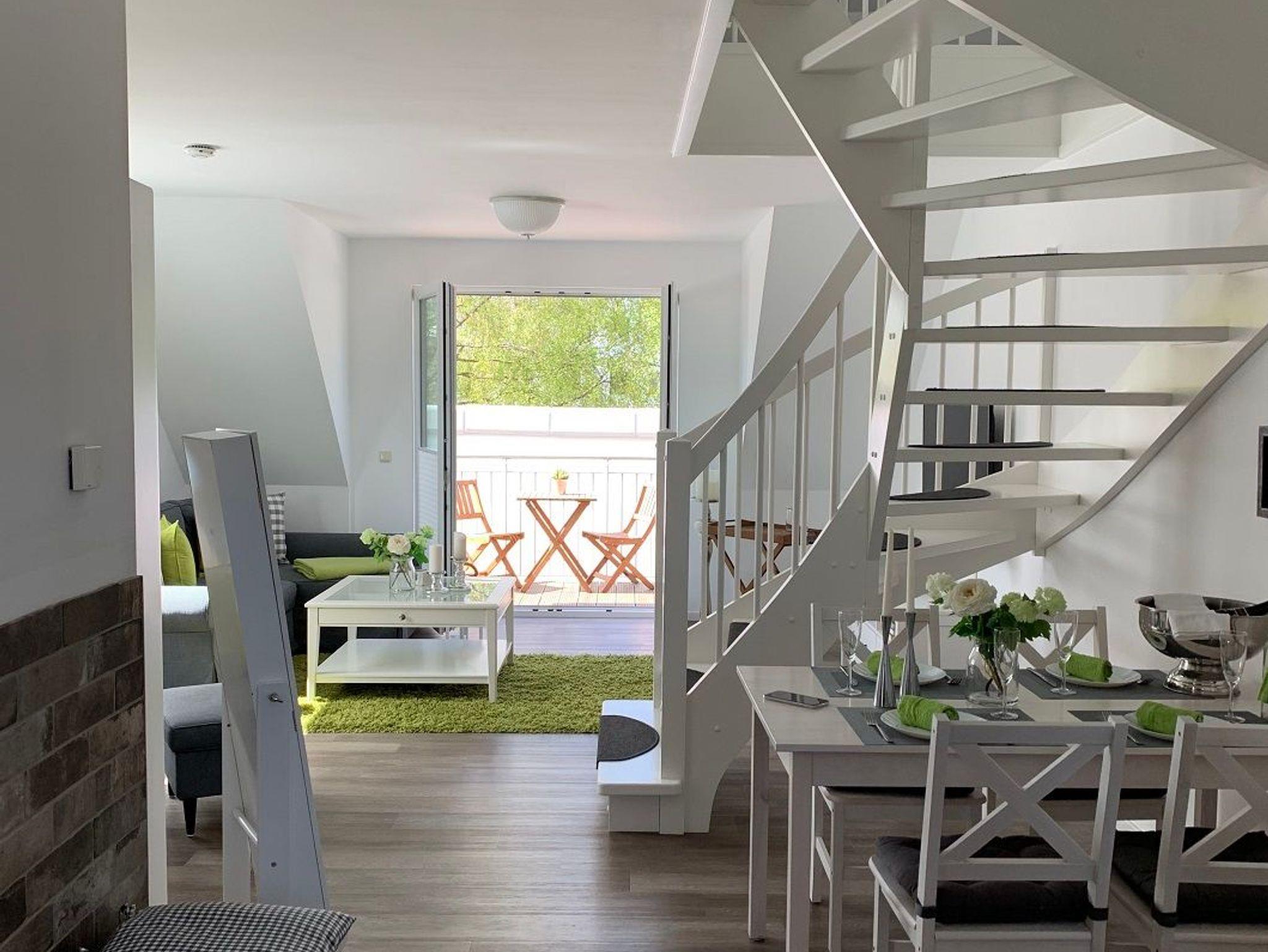 Die komfortable Ferienwohnung liegt im ersten Stock und verfügt über zwei Stockwerke mit Balkon.