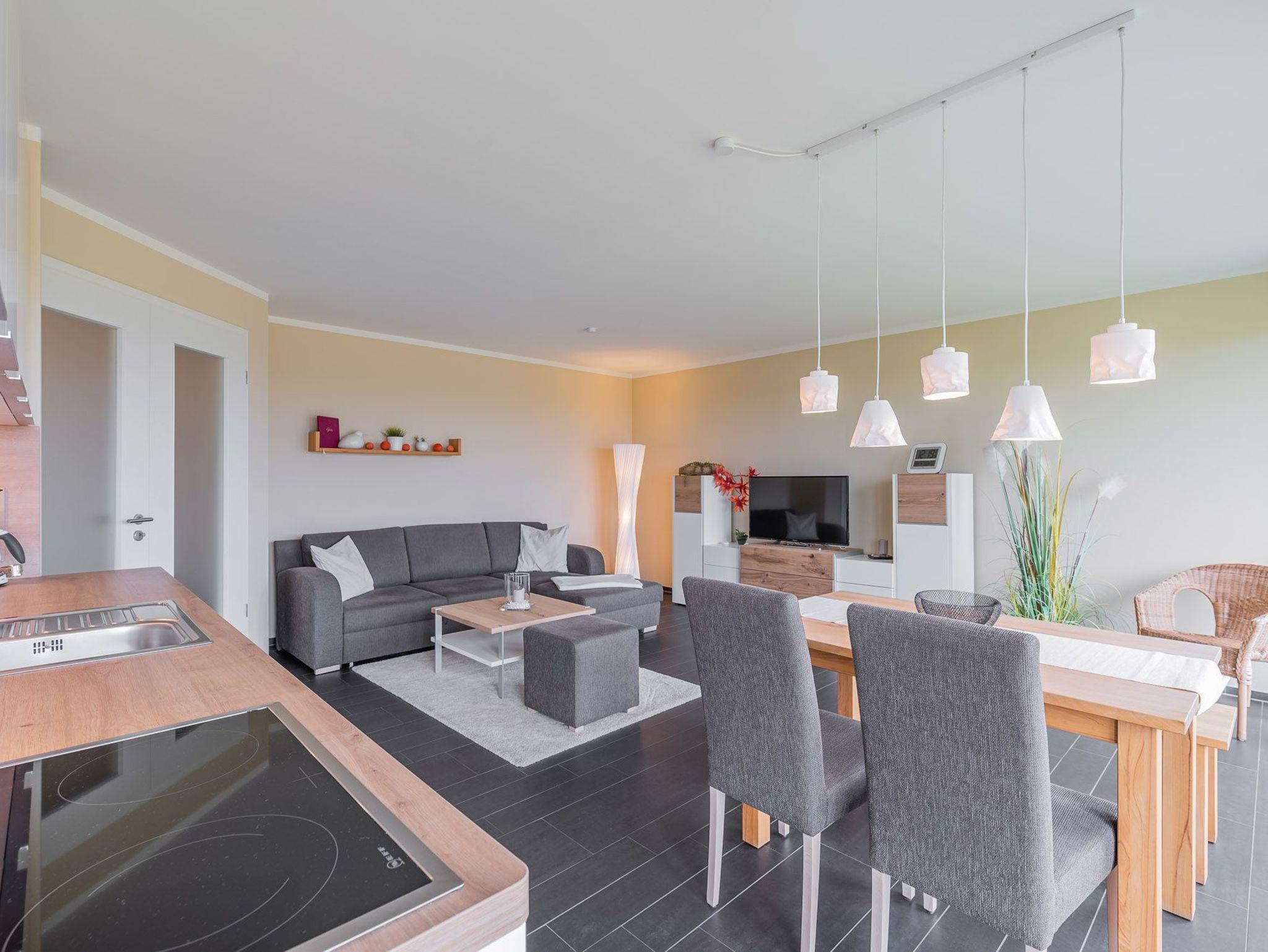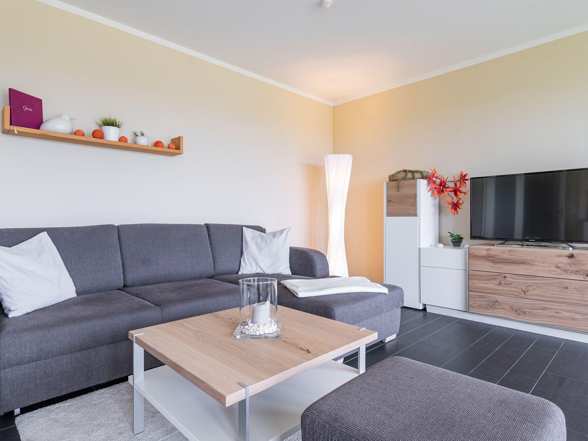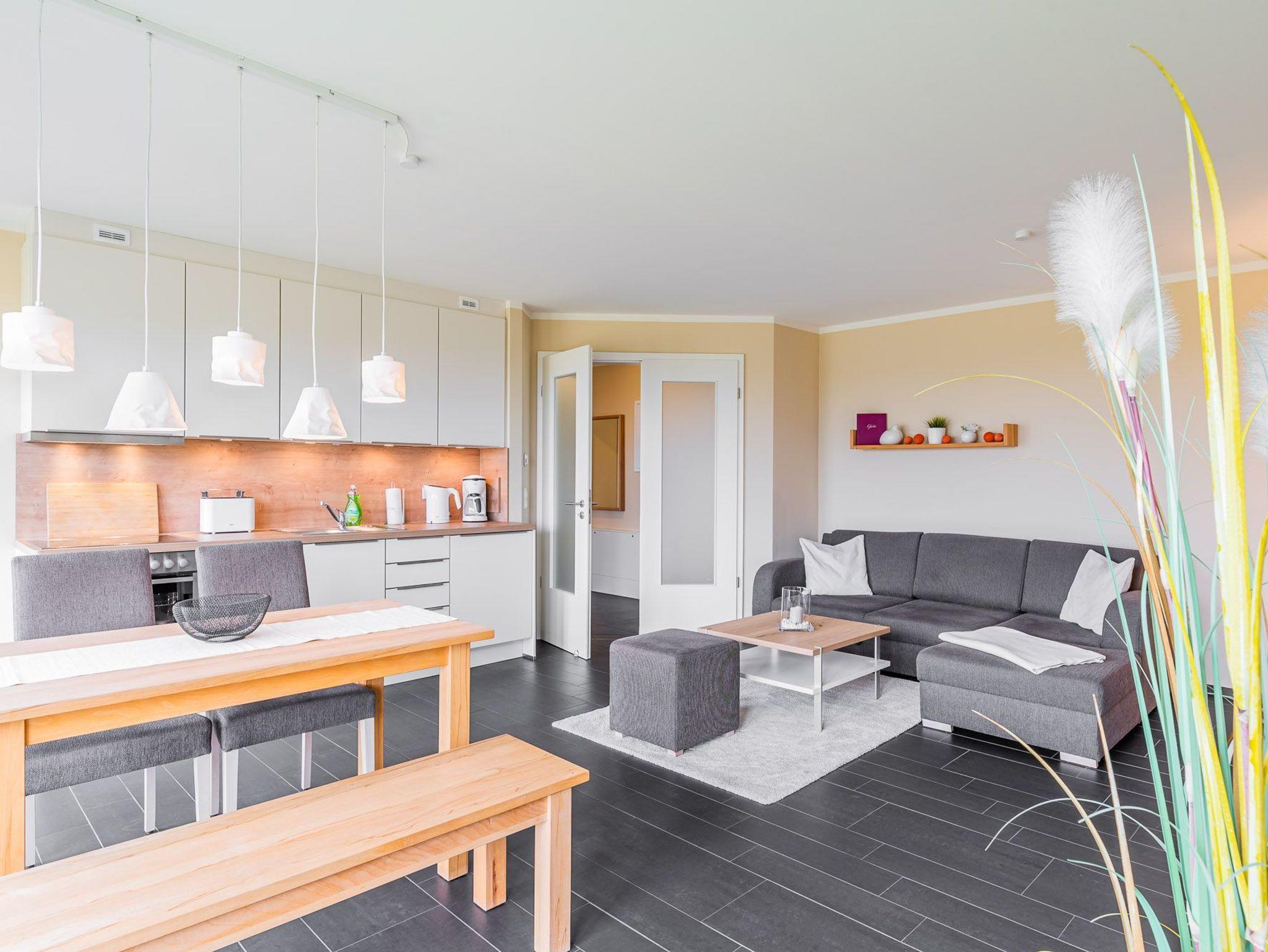 Genießen Sie Meerblick und Komfort in der 60m² Wohnung Calmsailing mit Sauna, Balkon und kostenfreiem Tiefgaragenstellplatz.