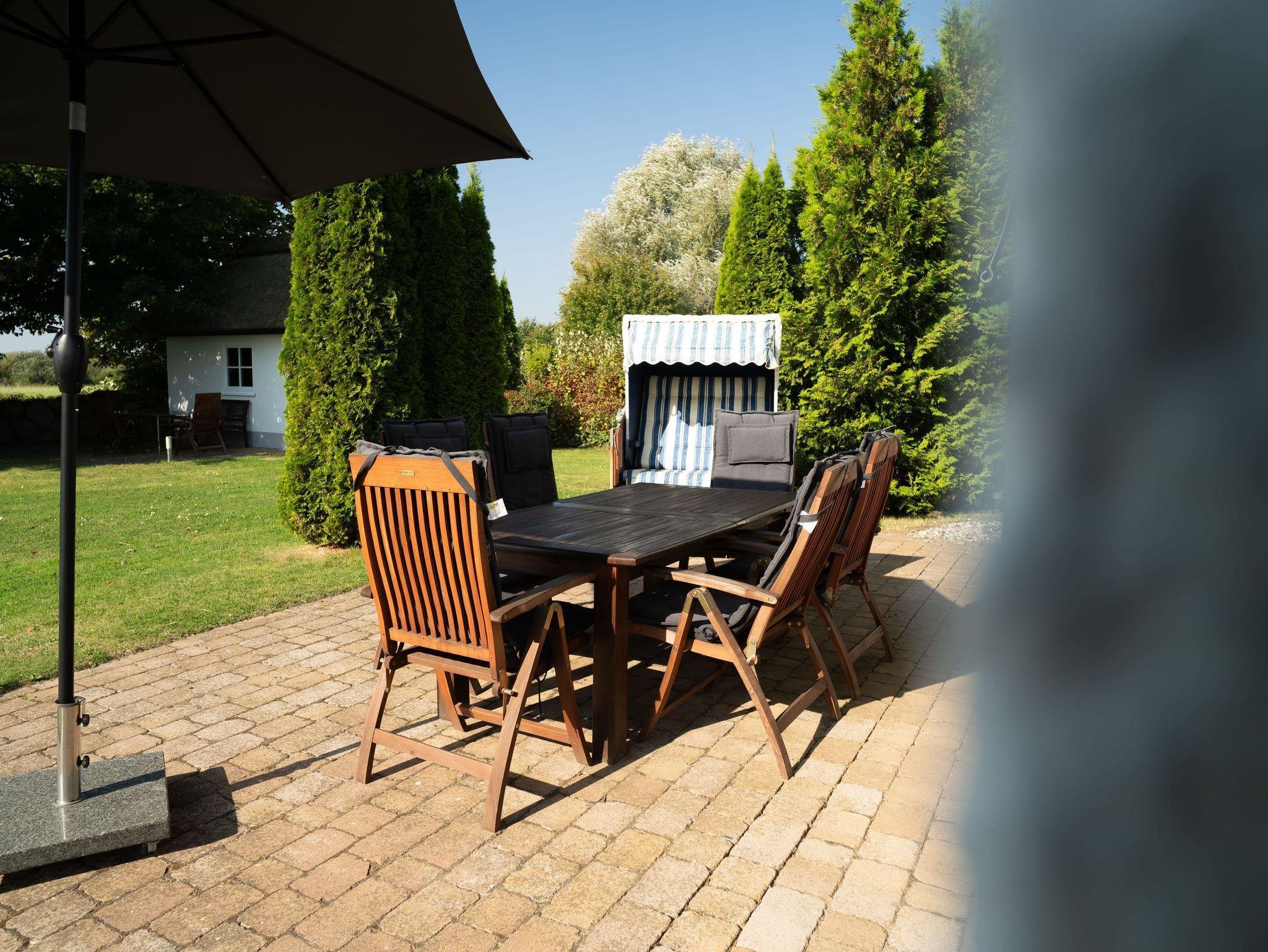 Über einen Ausgang im Wohnzimmer gelangen Sie zum Außenbereich des Hauses. Der großzügige Garten ist mit Liebe zum Detail gestaltet und bietet viel Platz für die Kinder zum Spielen. Als Highlight finden Sie hier ein Spielgerät mit Rutsche. Währenddessen können Sie auf der Terrasse entspannen und die Sonnenstrahlen genießen, Gartenmöbel sind vorhanden. Grillen ist hier leider nicht erlaubt. Auf dem Grundstück befindet sich ein eigener kostenfreier PKW-Parkplatz.