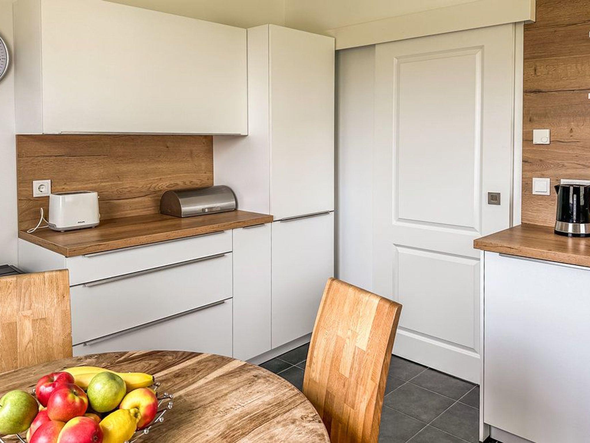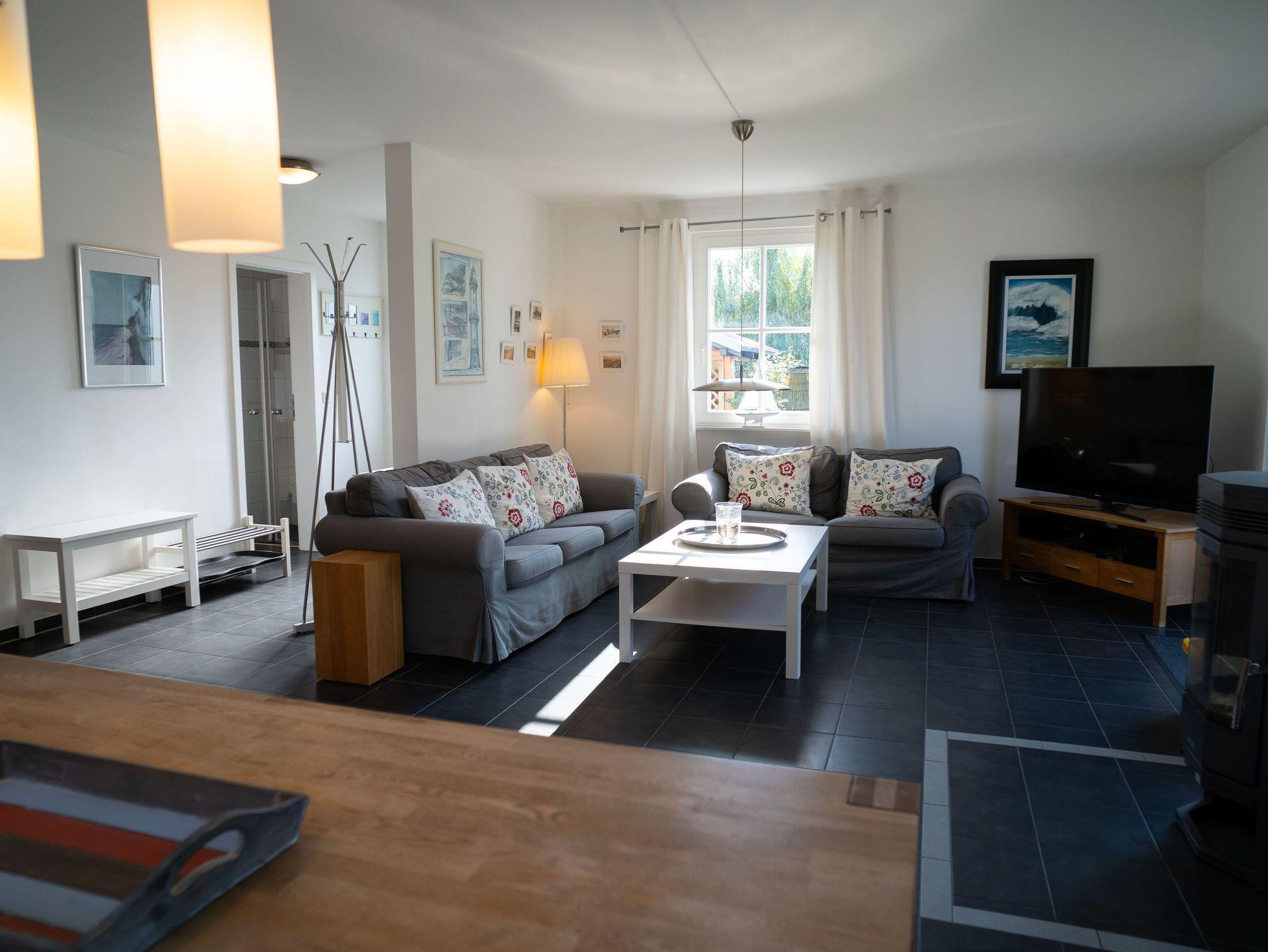 Das 2010 erbaute Ferienhaus bietet Ihnen Platz auf zwei Etagen. Im Erdgeschoss befindet sich der modern und stilvoll eingerichtete Wohnbereich. Die bequeme Sitzlandschaft mit moderner Tontechnik lädt hier zum Relaxen mit der ganzen Familie ein. In den kalten Monaten können Sie es sich vor dem knisternden Feuer des Kaminofens gemütlich machen. Die Küche ist mit allen technischen Geräten sowie ausreichend Geschirr ausgestattet. Ebenfalls im Erdgeschoss befindet sich das weitläufige Bad mit Badewanne, Dusche und eigener Sauna.