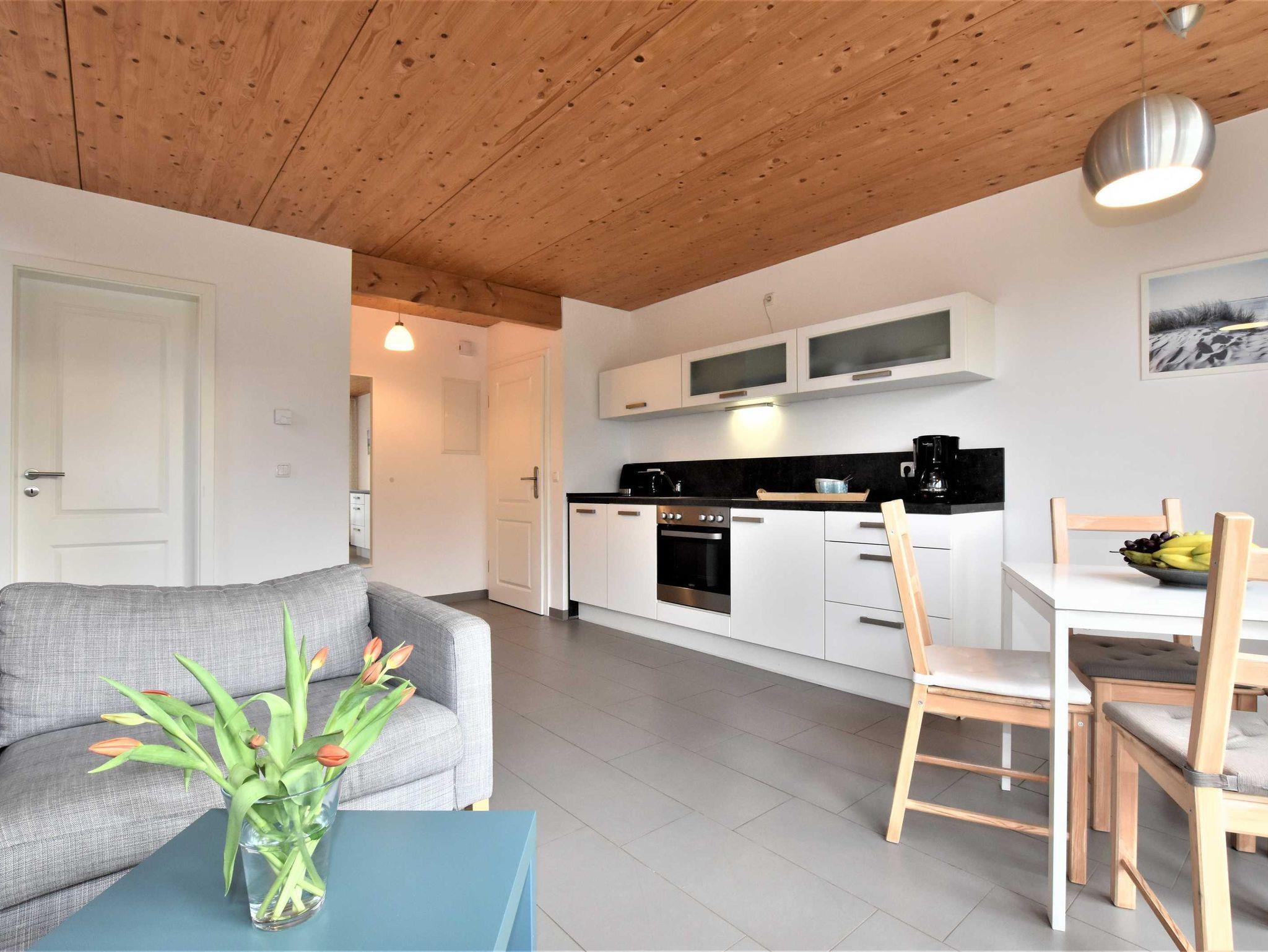 Die Wohnungen sind mit je zwei separaten Schlafzimmern eingerichtet und bieten einen hellen und offenen Wohn- Essbereich mit Zugang zur Sonnenterrasse und dem Garten. Bad mit Dusche und WC und ein kleiner Wirtschaftraum, den die Gäste beider Wohnungen gemeinsam nutzen. Auf dem Gelände steht ein abgeschlossener Parkplatz zur Verfügung und auch Fahrräder können sicher abgestellt werden.
