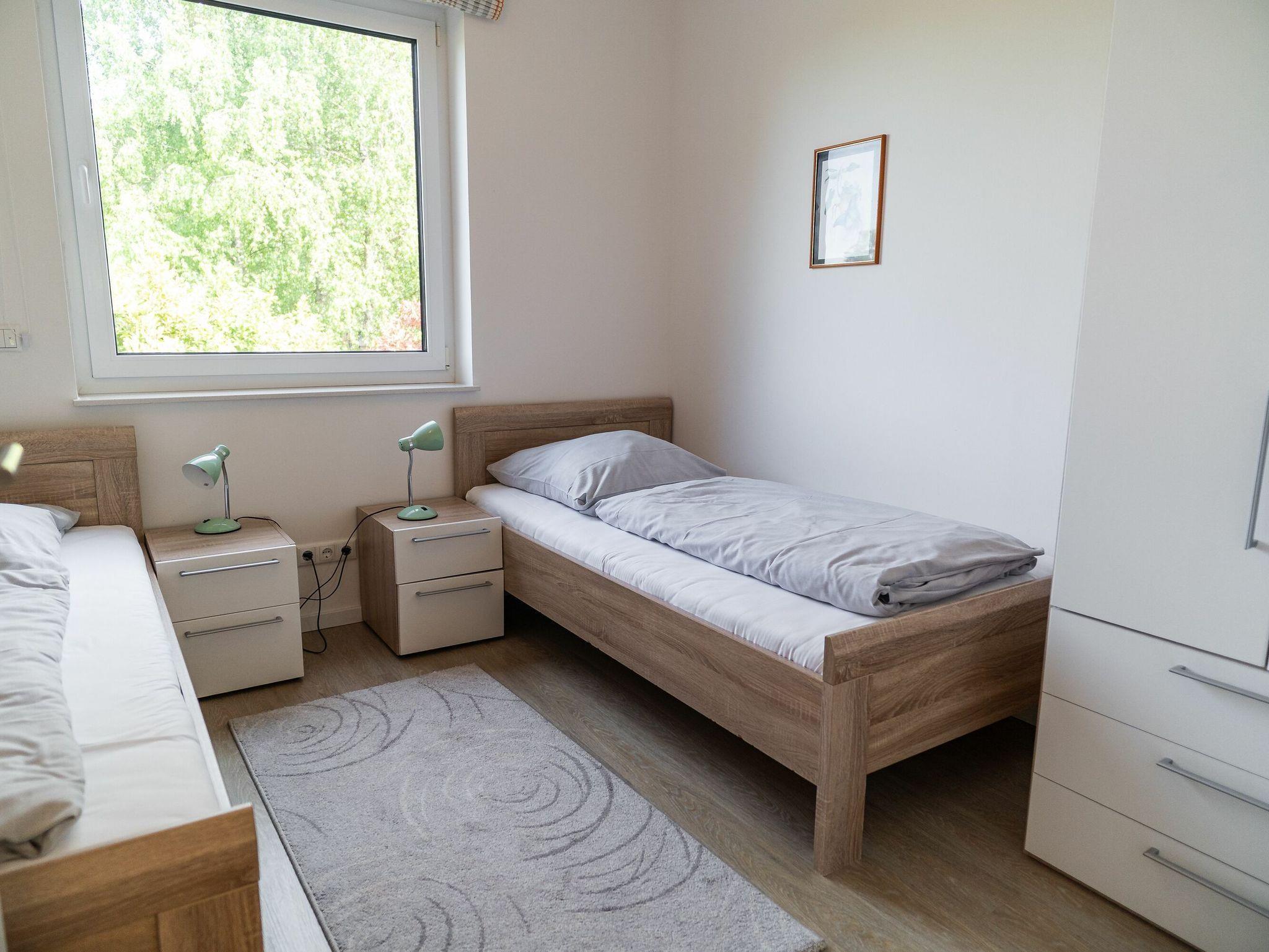 Zwei separate Schlafräume laden zum Träumen ein. Im großen Schlafzimmer erwarten Sie neben einem weiteren LED-TV, ein Doppelbett (1,80 x 2,0 m) und ein geräumiger Kleiderschrank. Im kleinen Schlafzimmer befinden sich zwei Einzelbetten, ein Schreibtisch und ein weiterer Kleiderschrank. Die Schlafräume bieten genug Platz für ein Kinderreisebett und können durch Rollläden gut abgedunkelt werden. An den Herbst- und Wintertagen sorgt in allen Räumen eine Fußbodenheizung für angenehme Wärme und Gemütlichkeit.