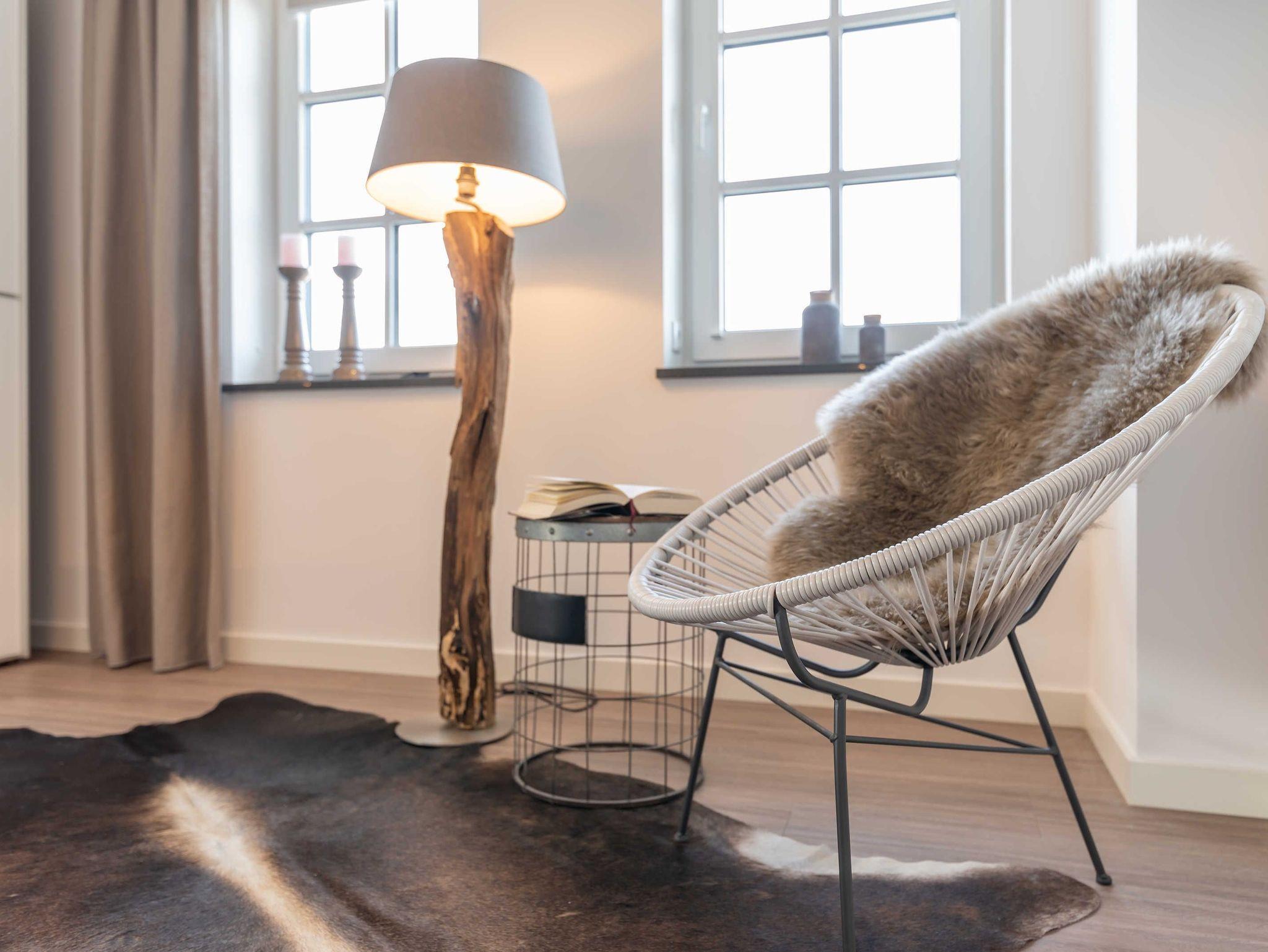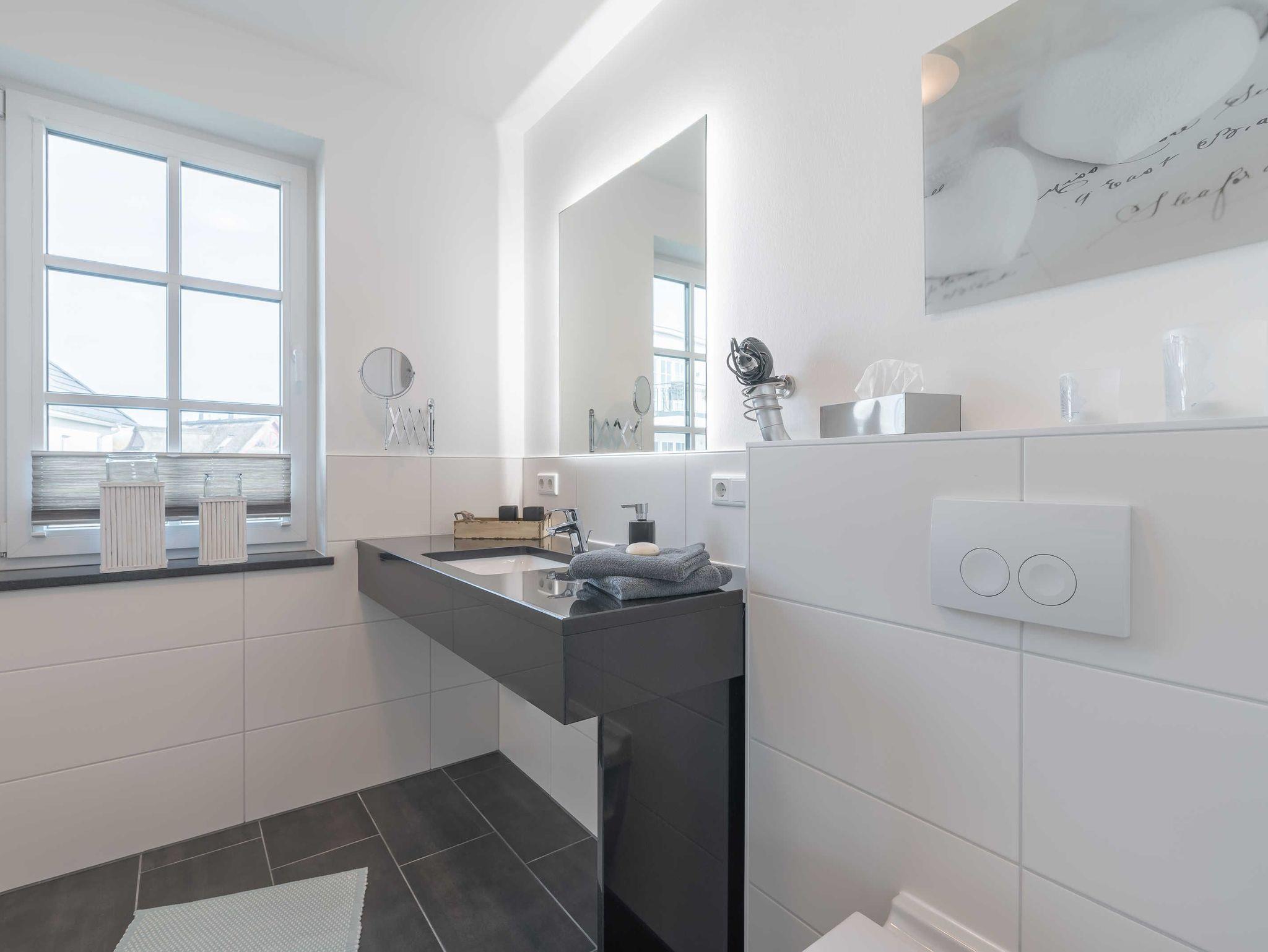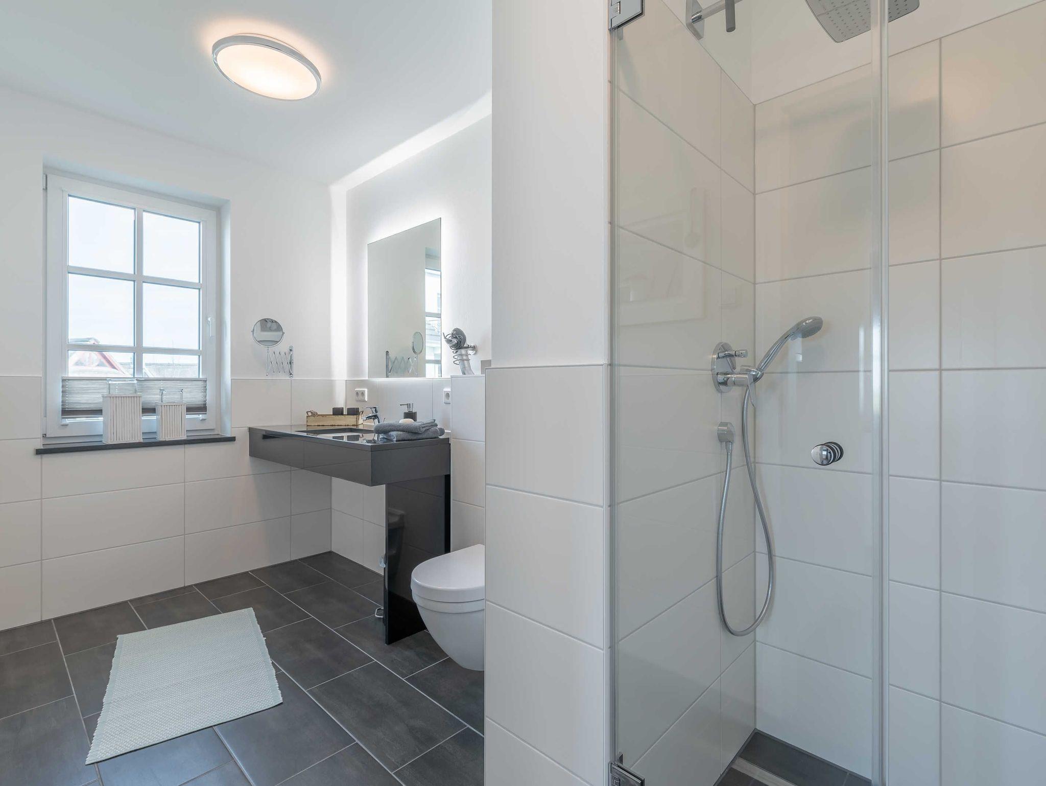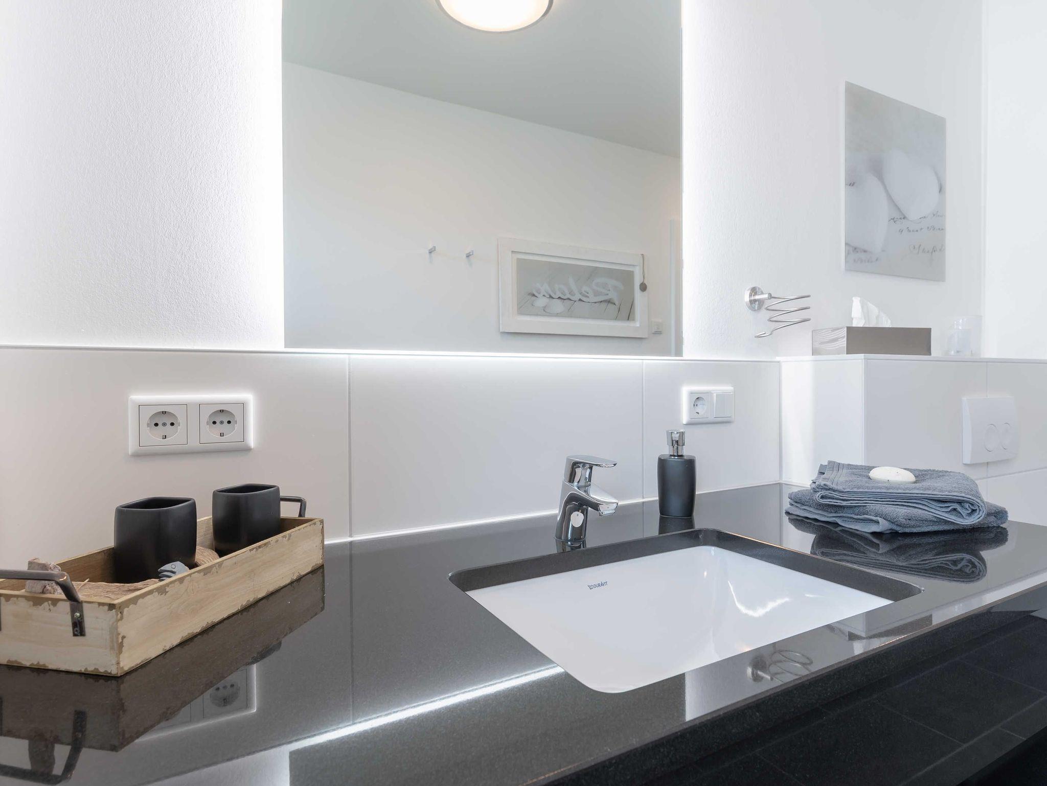 Die modern und liebevoll ausgestattete Unterkunft bietet ausreichend Platz für Familien oder Freundesgruppen mit bis zu vier Erwachsenen. Im Wohnzimmer sind eine Couch mit passendem Sessel und ein Esstisch mit vier Stühlen vorhanden. Zur Unterhaltung stehen ein 49 Zoll Flat-Screen-TV, ein Blu-Ray-Player und eine Mini-Stereoanlage zur Verfügung. In der voll ausgestatteten Küchenzeile finden Sie alles, was Sie für einen entspannten Aufenthalt benötigen: 4-Platten Cerankochfeld, Backofen mit integrierter Mikrowelle, Kühlschrank mit Tiefkühlfach, Geschirrspüler, Kaffeemaschine, Wasserkessel, Tassimo-Kapselmaschine und Toaster. Das erste Schlafzimmer ist mit einem komfortablen Boxspring Bett (180 x 200 cm) und einem Schwebetürenschrank sowie einem weiteren Flat-Screen-TV ausgestattet. Im zweiten Schlafzimmer befinden sich ein Doppelbett (140 x 200 cm) und ein eigener Kleiderschrank. Beide Schlafzimmer sind mit Verdunklungsplissees ausgestattet. Das Bad ist besticht mit einer bodengleichen Dusche mit Regenbrause, einem Handtuchheizkörper und einem Waschtisch mit großem Spiegel, Ablage und Fön. Vom Wohnraum aus haben Sie Zugang zum großzügigen Balkon mit Tisch und vier Stühlen. Von hier aus können Sie den Meerblick genießen und bei einem Glas Wein die herrliche Abendsonne beobachten. An kühlen Herbst- und Wintertagen sorgt eine Fußbodenheizung für Wärme und Gemütlichkeit.