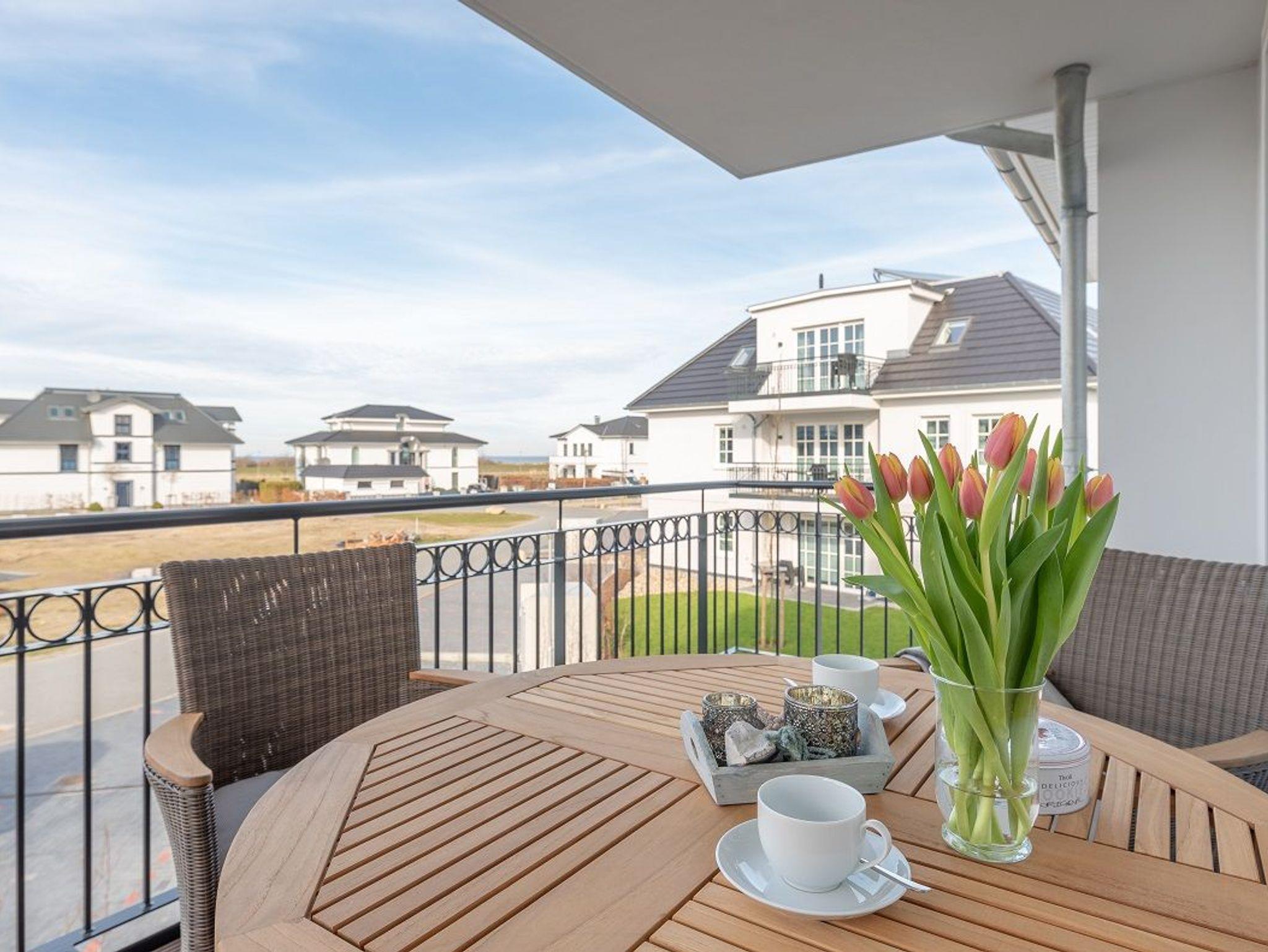 Drei-Zimmer-Ferienwohnung im ersten Obergeschoss mit weitem Meerblick vom Balkon