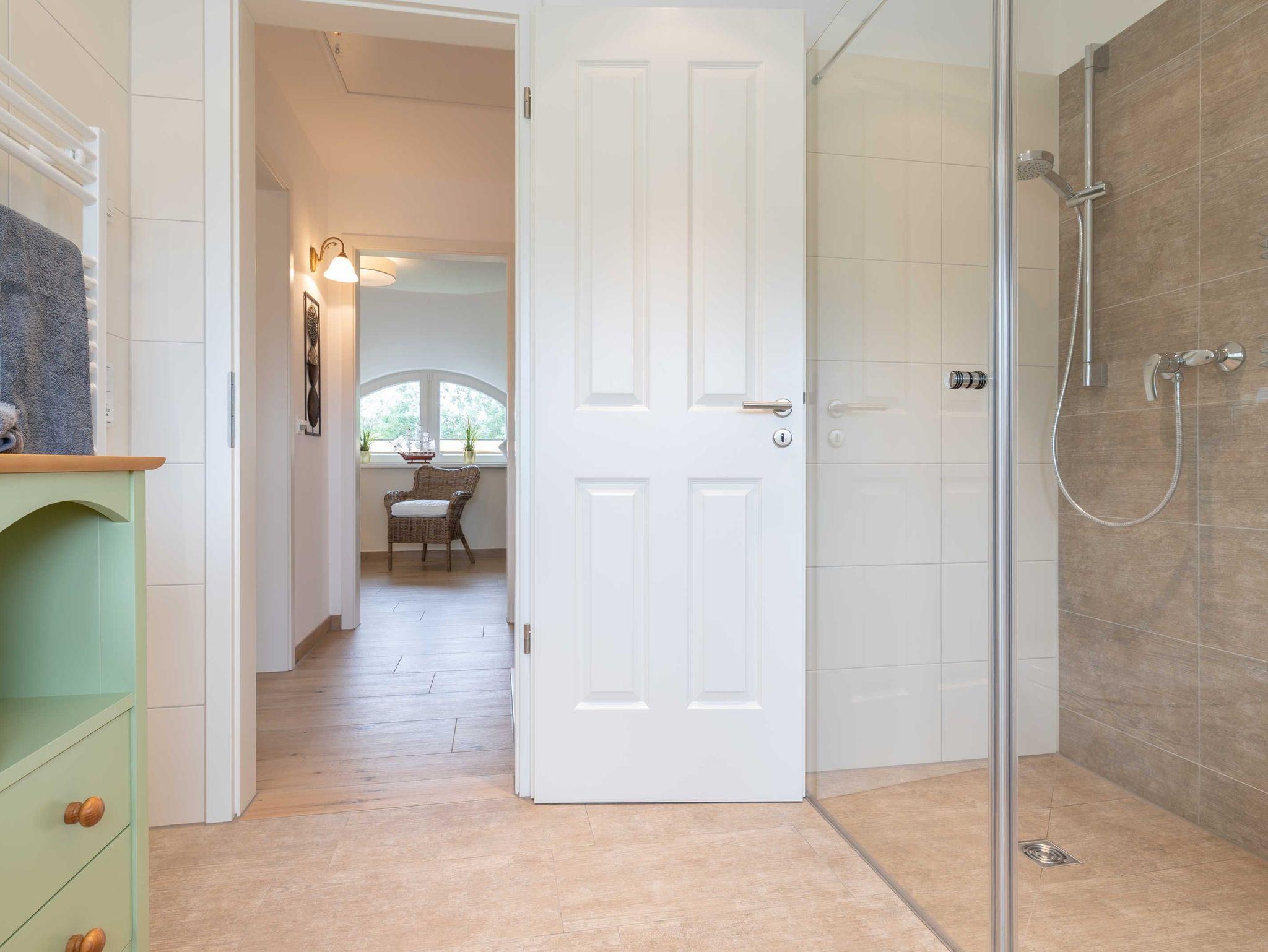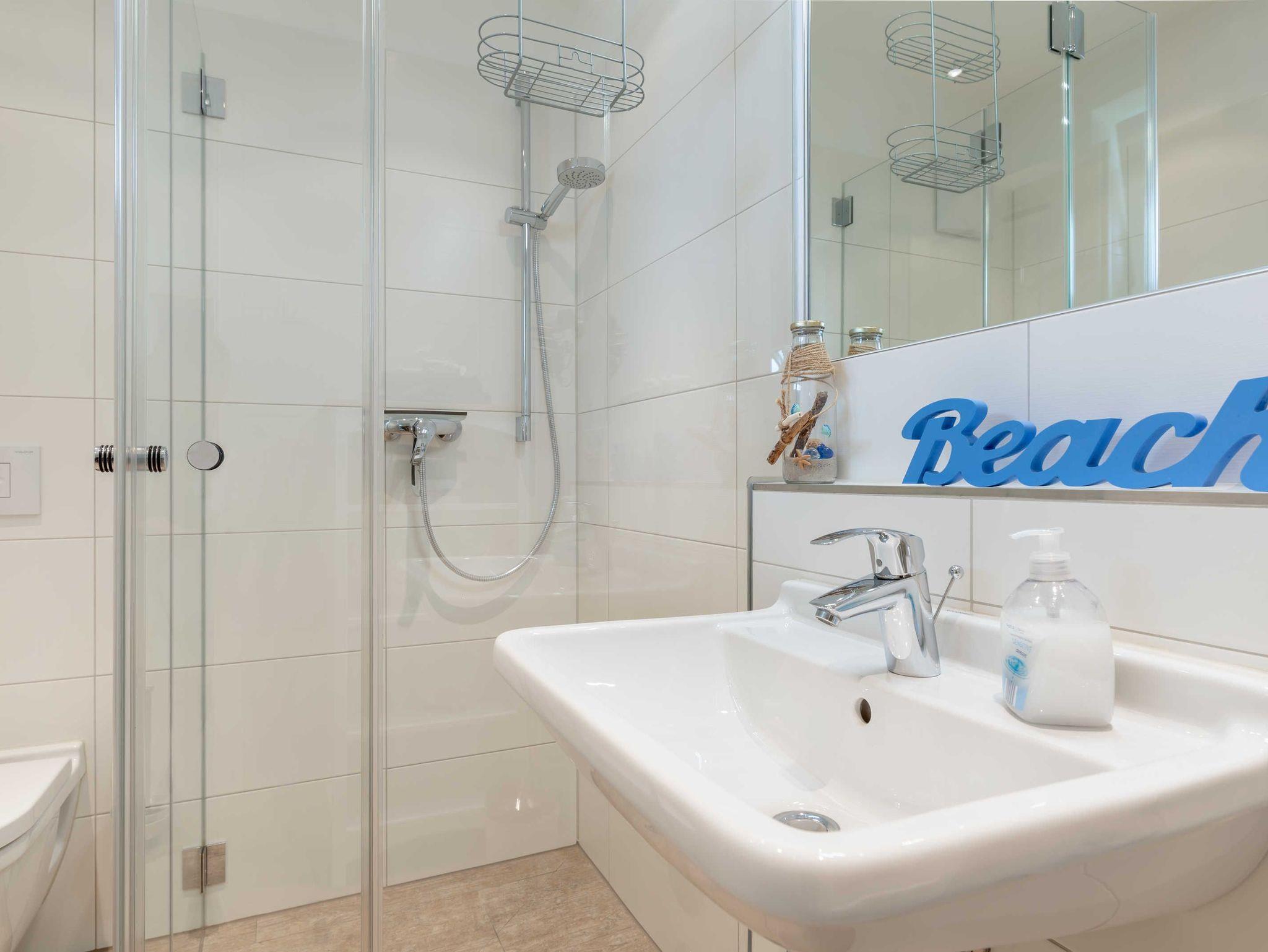 Im Erdgeschoss befindet sich das erste Bad inkl. Dusche, Föhn und Handtuchtrockner.
