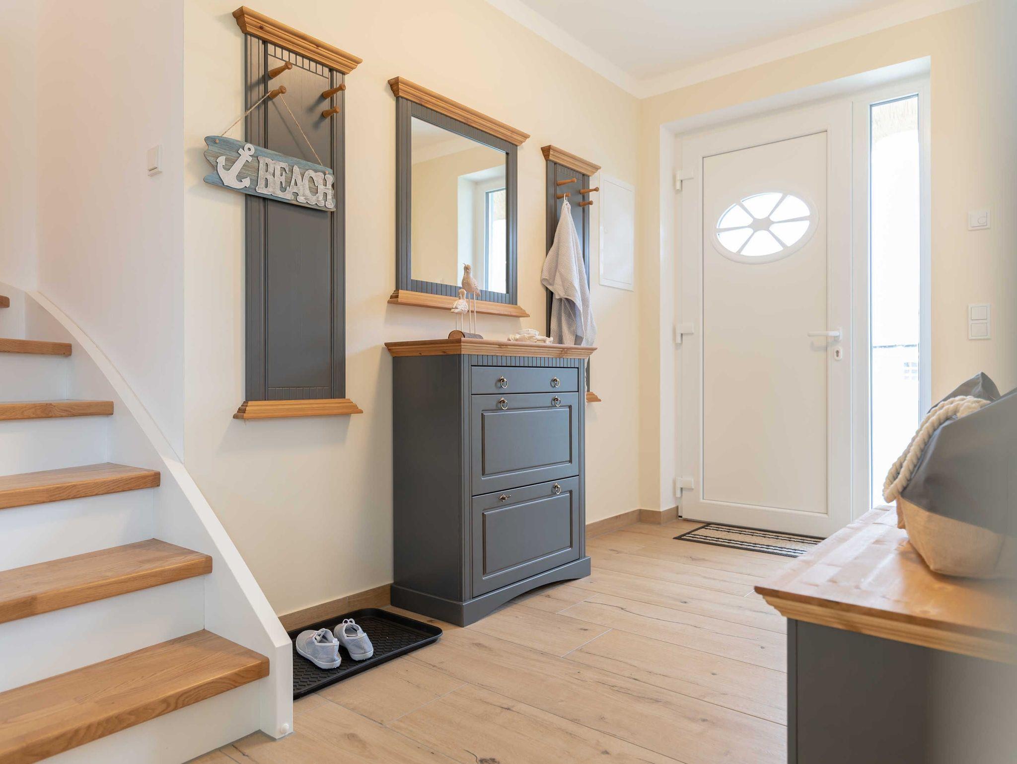 In dieser idyllischen Landschaft ca. 300 m Luftlinie zum Ostseestrand befindet sich das Hus Strandweg, angelehnt an die alte Bauweise wurde das Haus 2016 mit einem klassischen Reetdach fertiggestellt. Die familienfreundliche Doppelhaushälfte bietet alles was man sich für einen gemütlichen Urlaub wünscht. Die angelegte Rasenfläche bietet genug Platz zum Sonnen oder div. Ballspiele. Angrenzend an die Rasenfläche lädt die Terrasse inkl. Gartenmöbel zu einem ausgedehnten Frühstück ein. Das Reetdachhaus erstreckt sich über zwei Etagen inkl. Fußbodenheizung in allen Räumen. Die hell und freundlich eingerichtete Doppelhaushälfte bietet Platz für max. vier Erwachsene und zwei Kinder bis max. 3 Jahre.