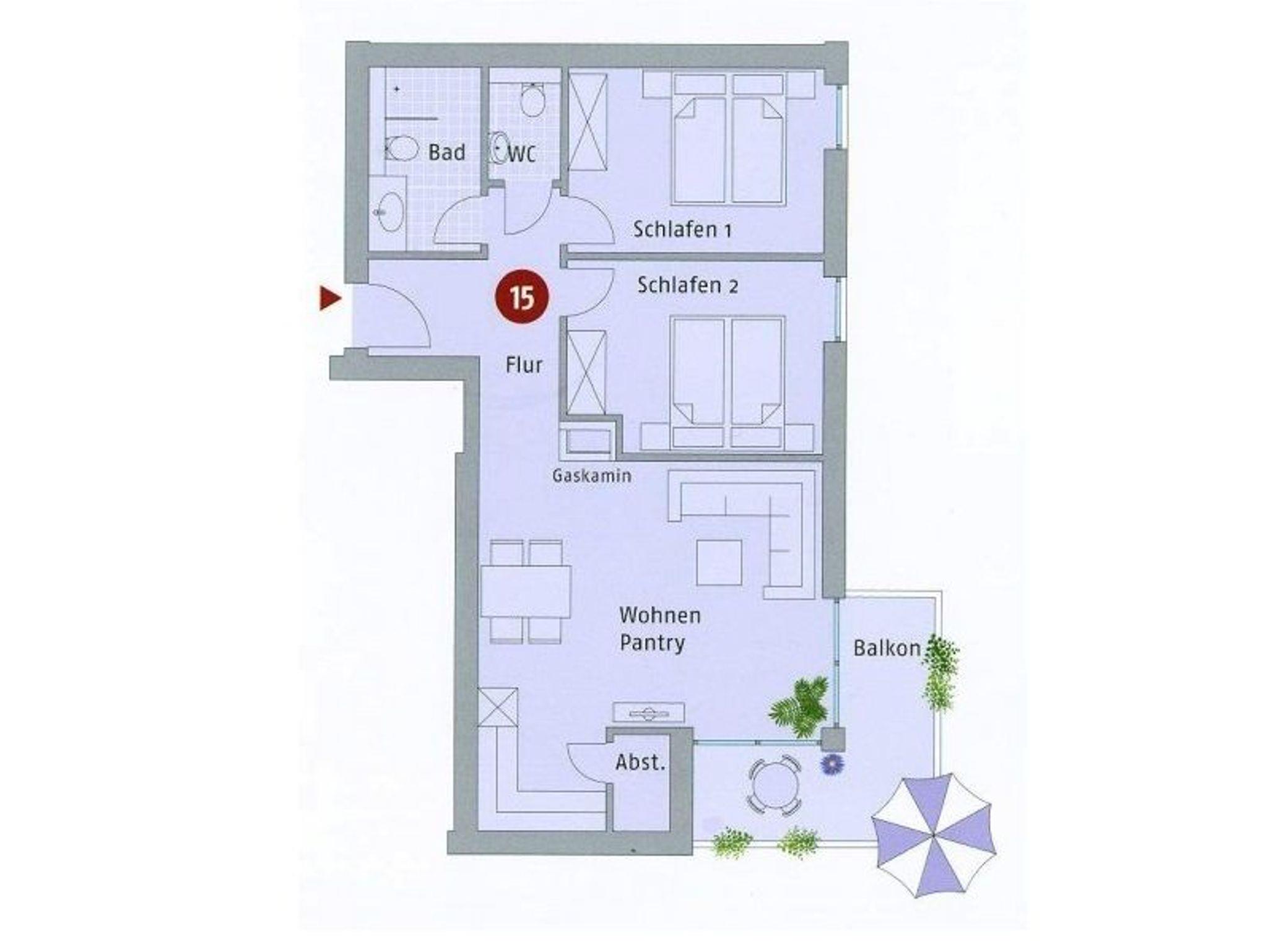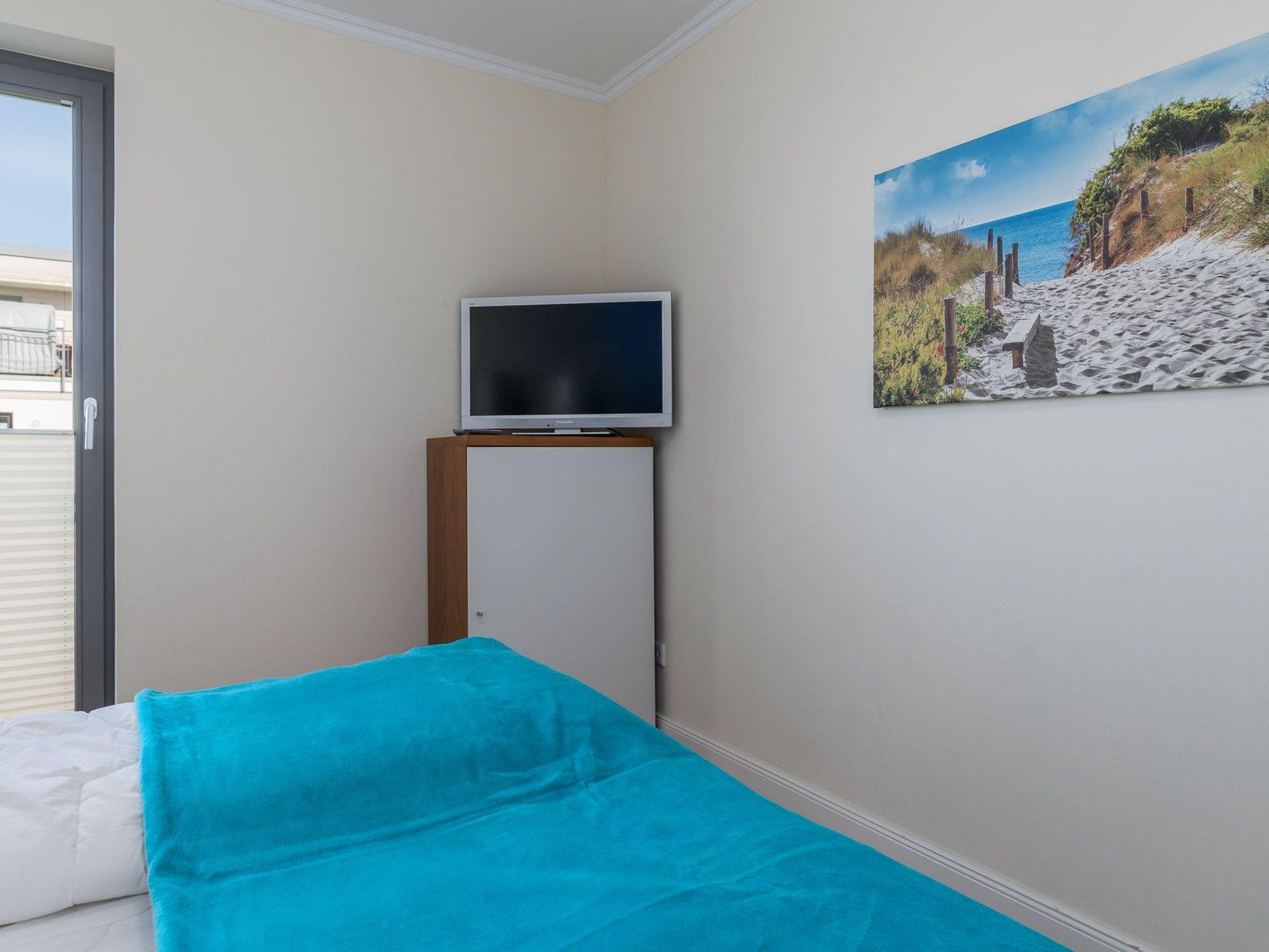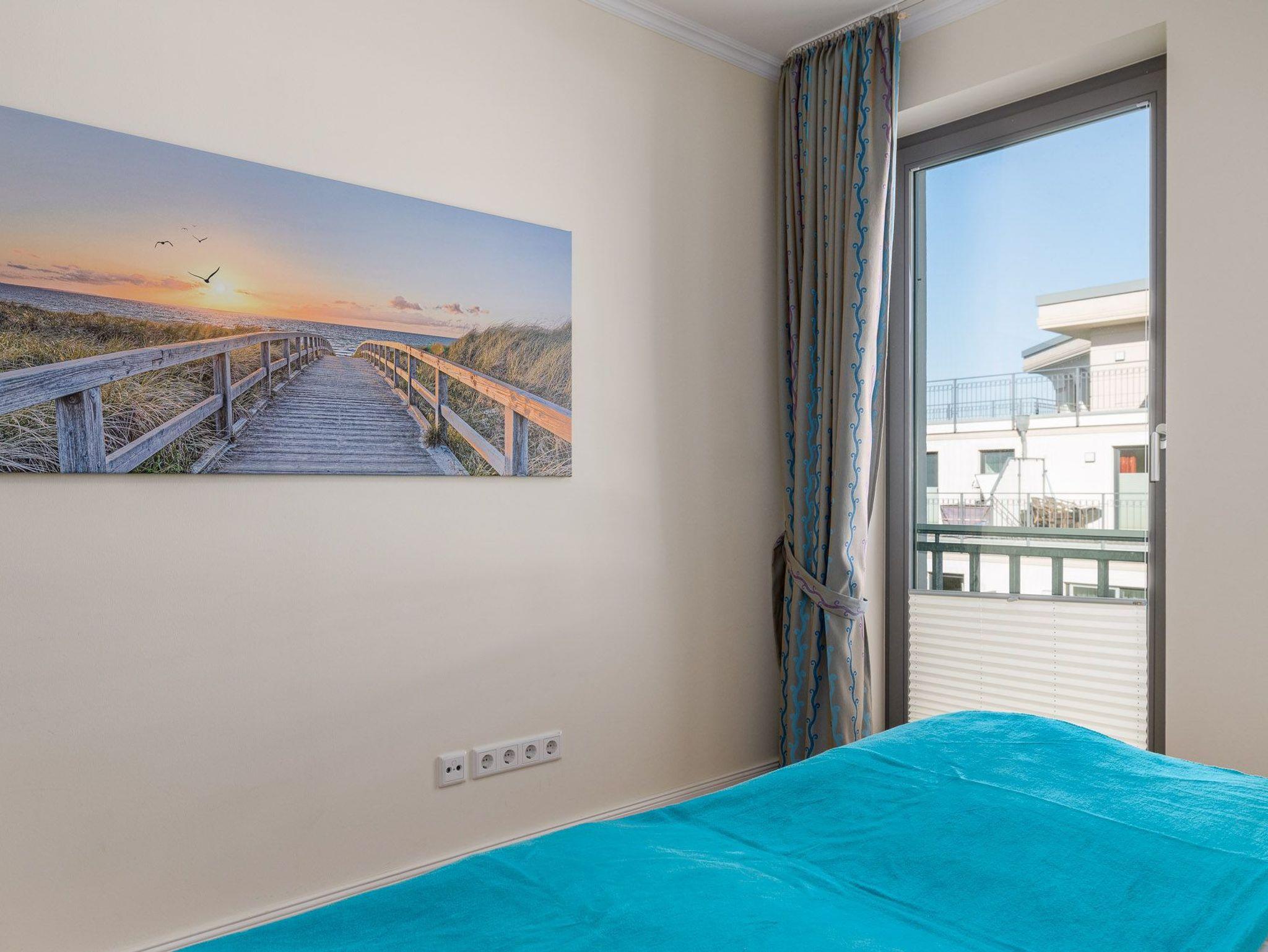 Strandnahe, exklusive 3-Raumwohnung für max. 3 Erwachsene und 2 Kleinkinder, 2 Schlafzimmer, Gäste-WC und Balkon mit Meerblick im 2.OG.