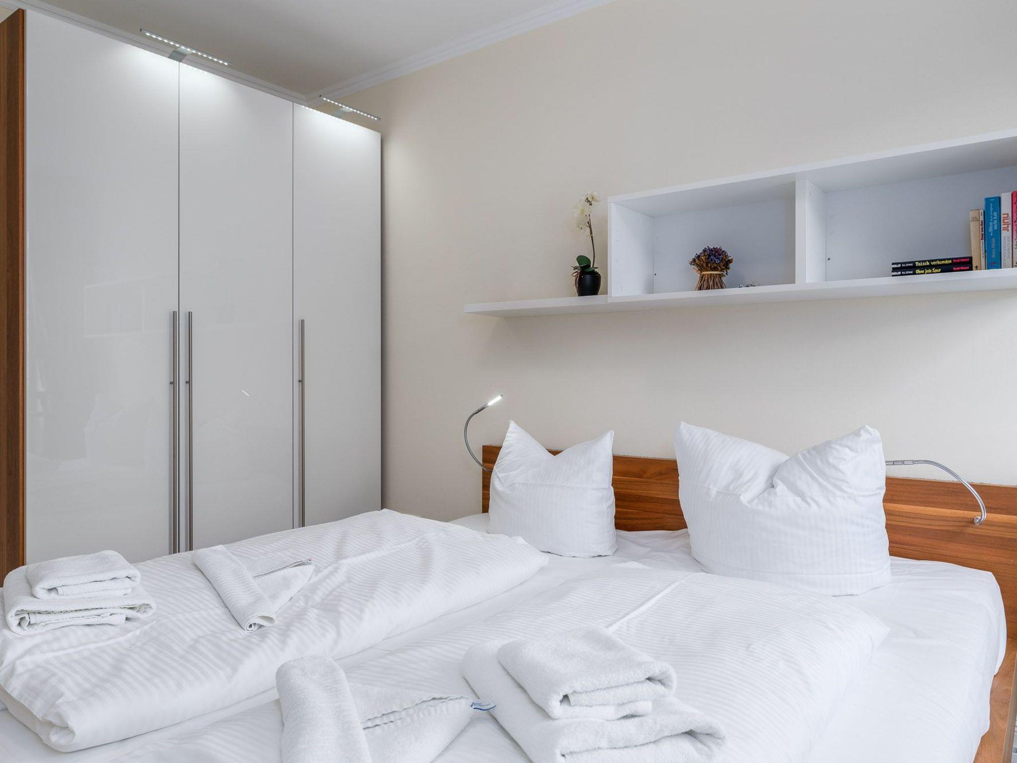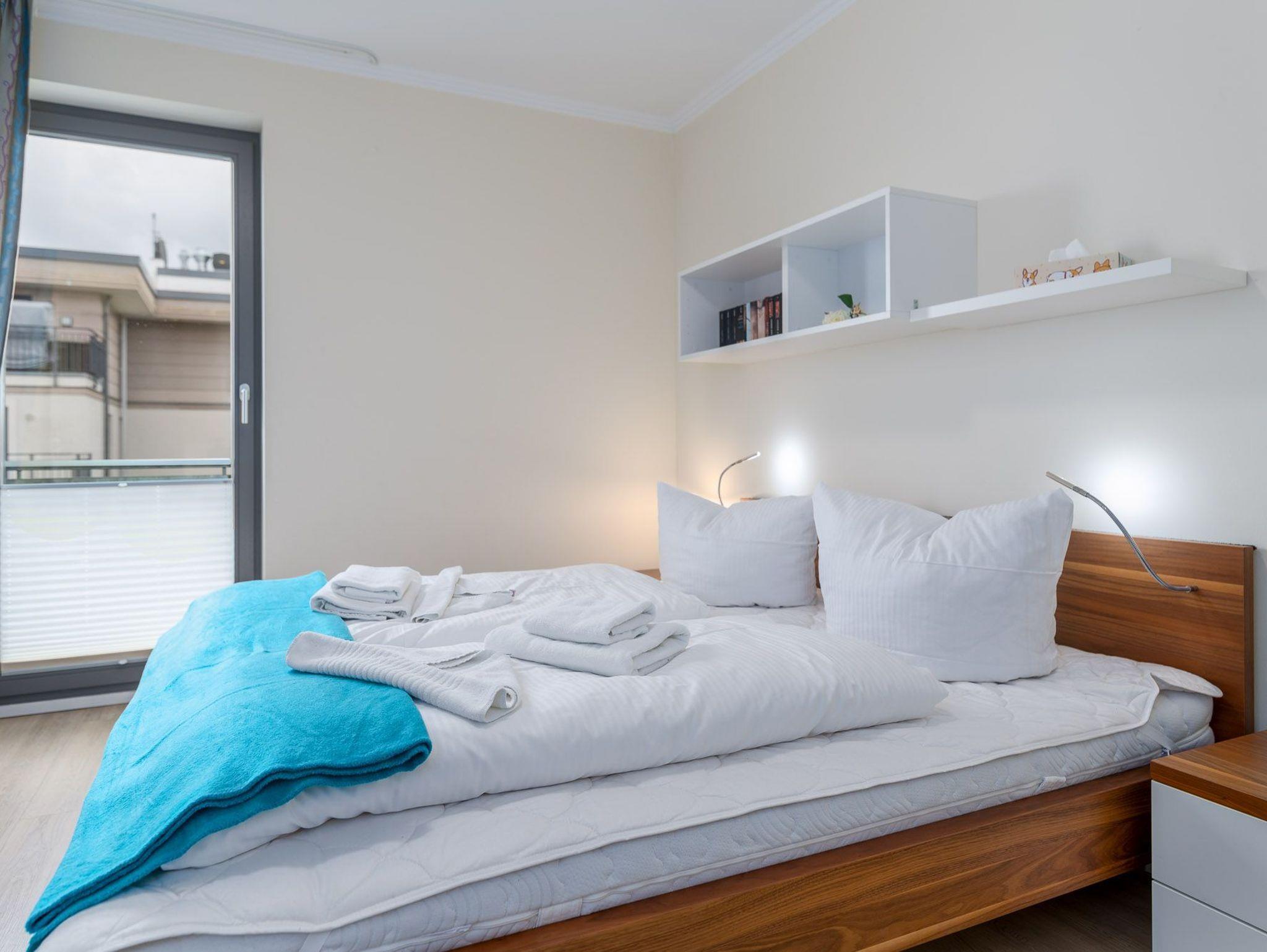 Die 2011 erbaute Unterkunft liegt nur 50 m vom Ostseestrand entfernt. Der helle, lichtdurchflutete Wohnraum empfängt Sie mit stilvollem Gas- Kamin, TV- Gerät, DVD-Spieler und gemütlicher Leder-Sitzecke. Im dortigen Essbereich, der mit einem Massivholz-Esstisch und bequemen Stühlen eingerichtet wurde, können gesellige Mahlzeiten und auch Spieleabende der ganzen Familie stattfinden. Die offene Einbauküche ist ausgestattet mit Siemens-Einbaugeräten (Geschirrspüler, Mikrowelle, Cerankochfeld, Backofen), Dunstabzugshaube, Kühlschrank mit Gefrierfach, Kaffeemaschine, Wasserkocher und Toaster. In den beiden wunderschönen Schlafzimmern sorgen je ein Doppelbett (hochwertige Kaltschaum-Matratzen auf Lattenrost) für den erholsamen Urlaubsschlaf. Für den nötigen Stauraum Ihrer Urlaubskleidung sind mehrere raumhohe Kleiderschränke eingebaut worden. Zusätzlich steht ein separater Abstellraum in der Wohnung bereit. Eines der Schlafzimmer verfügt zudem über ein weiteres TV-Gerät. Das elegante Duschbad besticht mit einer ebenerdigen Dusche, inklusive Glasabtrennung und Handtuchtrockner. Angrenzend befinden sich ein weiteres Gäste-WC. Zu einem sonnigen Frühstück lockt der charmante Eck-Balkon mit Meerblick in Nord-Ost-Ausrichtung. Eine Fußbodenheizung in allen Räumen ist für angenehme Wärme zuständig. Zur Wohnung gehören zudem ein kostenfreier Tiefgaragenstellplatz und eine Abstellmöglichkeit für Fahrräder. Bitte beachten Sie die Durchfahrtshöhe von max. 1,90 m der Tiefgarage. Mit dem Personenaufzug gelangen Sie von der Tiefgarage aus direkt zu Ihrer Wohnung. Im Erdgeschoss der Wohnung befindet sich ein gekennzeichneter Abstellbereich für Kinderwagen. Hier noch einige Hinweise: Es handelt sich um eine Nichtraucherwohnung. Haustiere sind nicht erlaubt. Das kostenfreie WLAN in der Unterkunft ist ausschließlich für die Verwendung von Social Media und den Austausch von Bildern mit Familie und Freunden gedacht. Die Nutzung zum Streamen von Filmen ist nicht vorgesehen. Wäschesets, Kinderreisebett und Kinderhochstuhl können kostenpflichtig zugebucht werden. Eine Waschmaschine und ein Trockner stehen im separaten Hauswirtschaftsraum im Untergeschoss der Villa zu Ihrer Verfügung (gegen Gebühr / 1,00 Euro Münzen). Sichern Sie sich einen der begehrten Strandkörbe nur ein paar Meter entfernt von den rauschenden Wellen der Ostsee (Anfang Mai - Ende August) und buchen Sie jetzt zu besonderen Konditionen (12,00 Euro pro Tag oder 75,00 Euro pro Woche.)