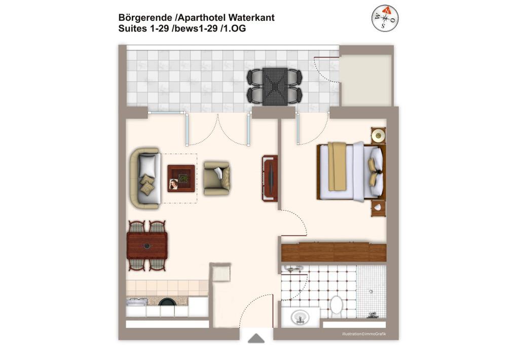Nutzen Sie kostenlos die moderne und exklusive Wellnesslandschaft mit grossem Indoor-Pool, Saunen (finnische Sauna 90°, Biosauna 60° und Dampfsauna 55°), Erlebnisduschen sowie Ruheoasen. Das Aparthotel Waterkant Suites verfügt außerdem über Rezeption, Lobby, Lift, Tiefgarage und einen Fahrradabstellraum. Zu jeder Wohnung gehört ein Tiefgaragenstellplatz.