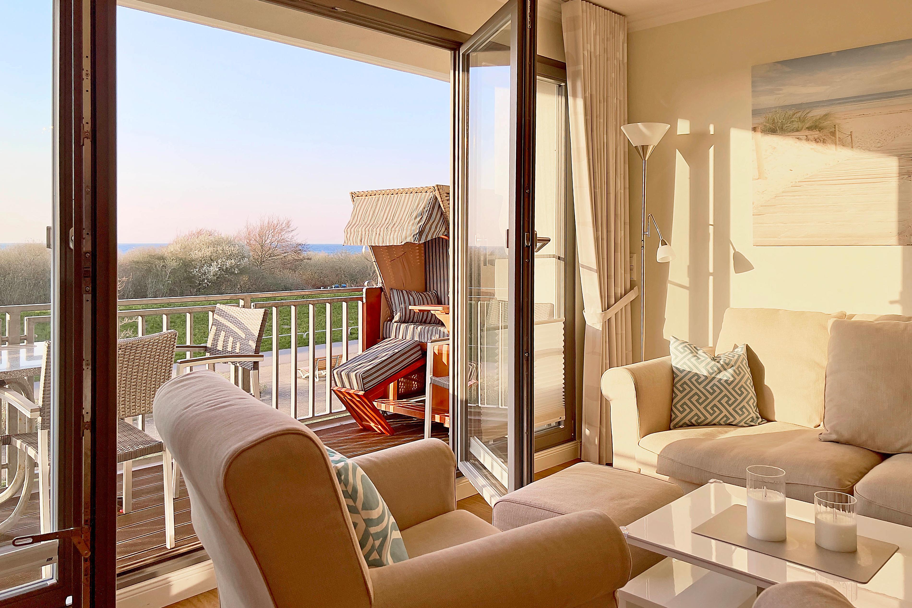 Genießen Sie einen traumhaften Ostseeblick aus der liebevoll eingerichteten Ferienwohnung mit Balkon in Börgerende-Rethwisch.