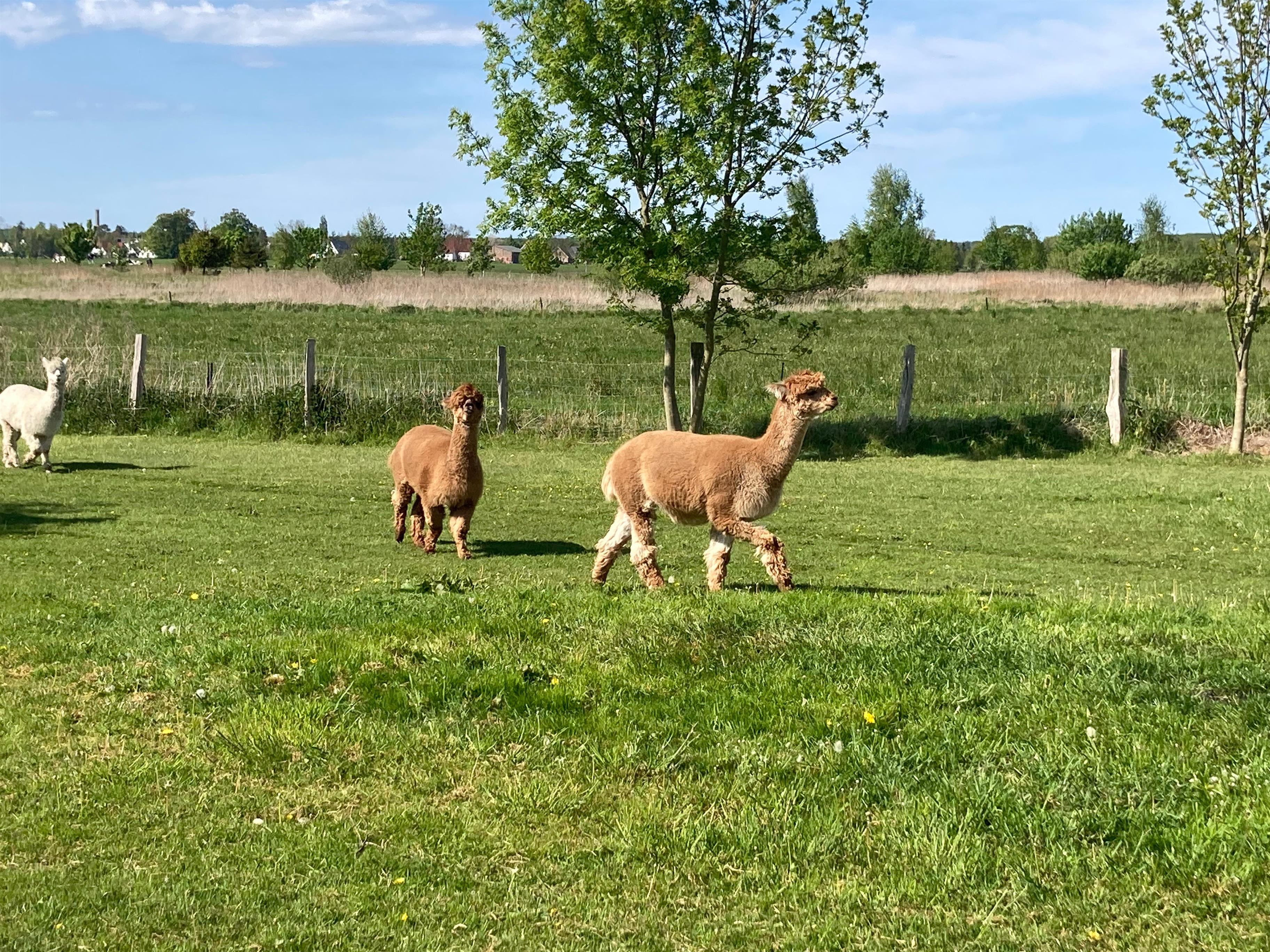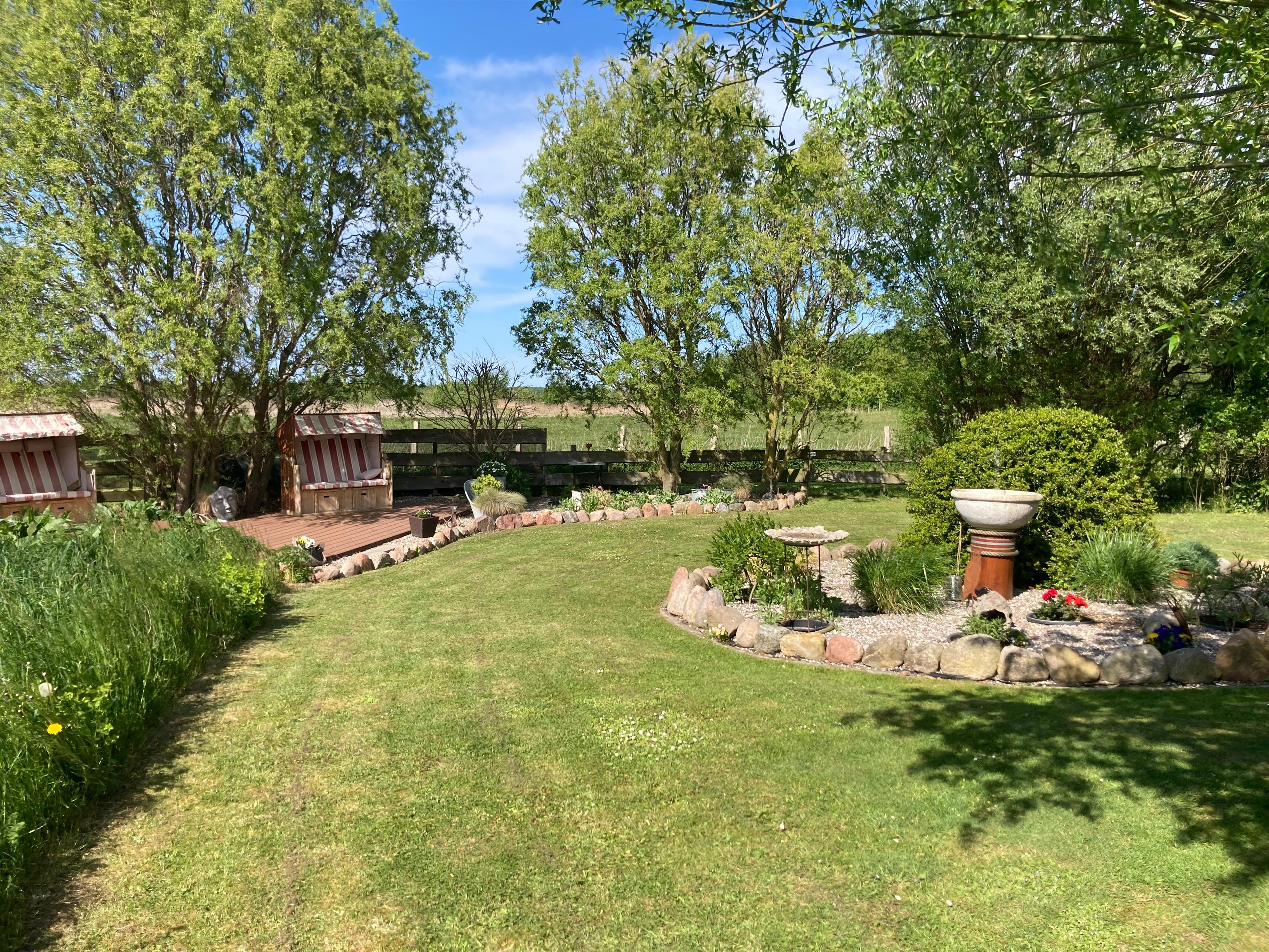 Bootsmannsstube 3 hat einen fantastischen Ausblick auf den Garten und die Alpakakoppel. Genießen Sie die Abendstimmung auf Hus un Köken.