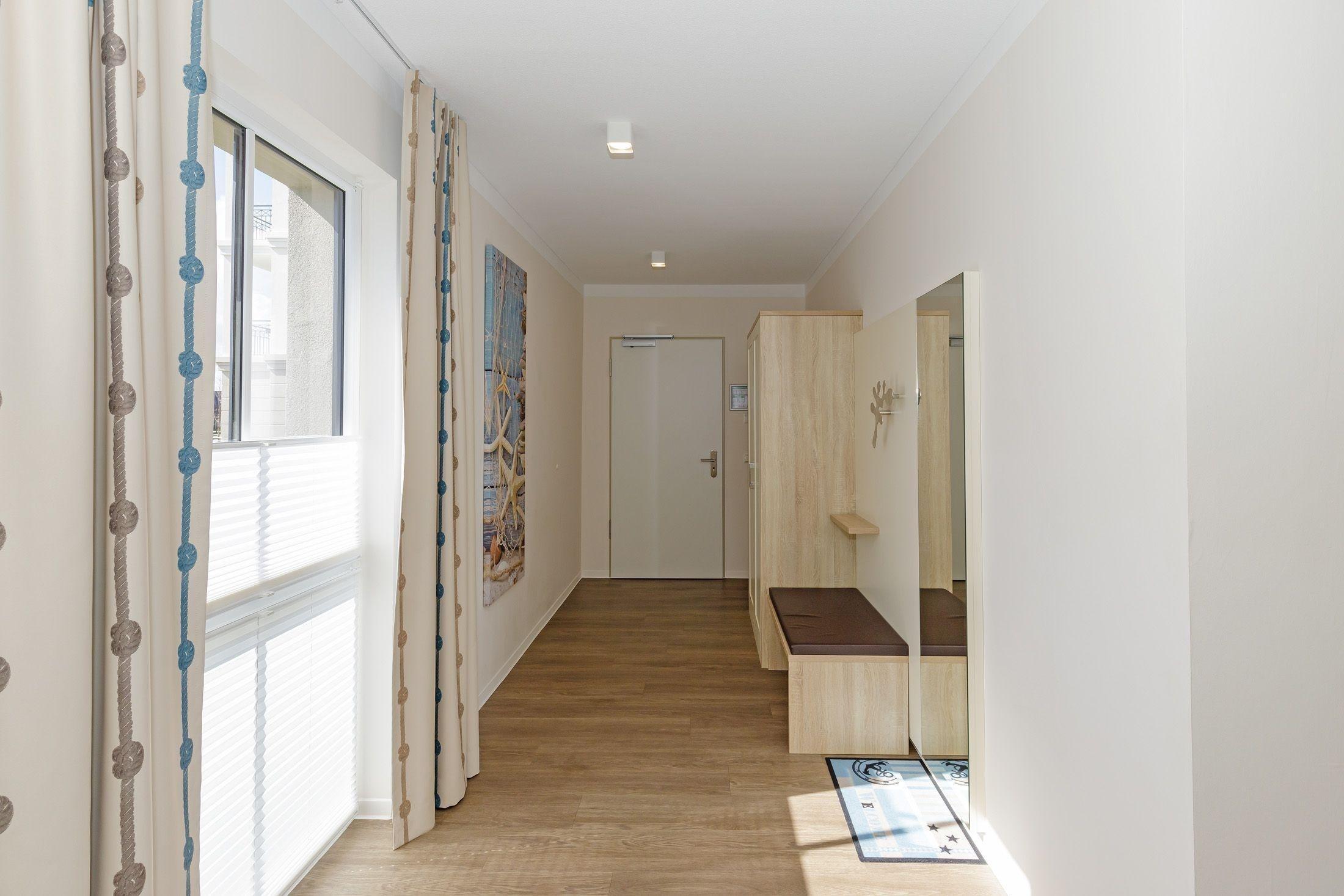 Die Suite 0-11 hat gemeinsam mit der Suite 0-10 einen separaten Vorflur, welcher durch eine zusätzliche Tür geschlossen werden kann. Beide Apartments können somit von einer großen Familie zusammen gebucht werden und bieten Platz für bis zu 9 Personen.