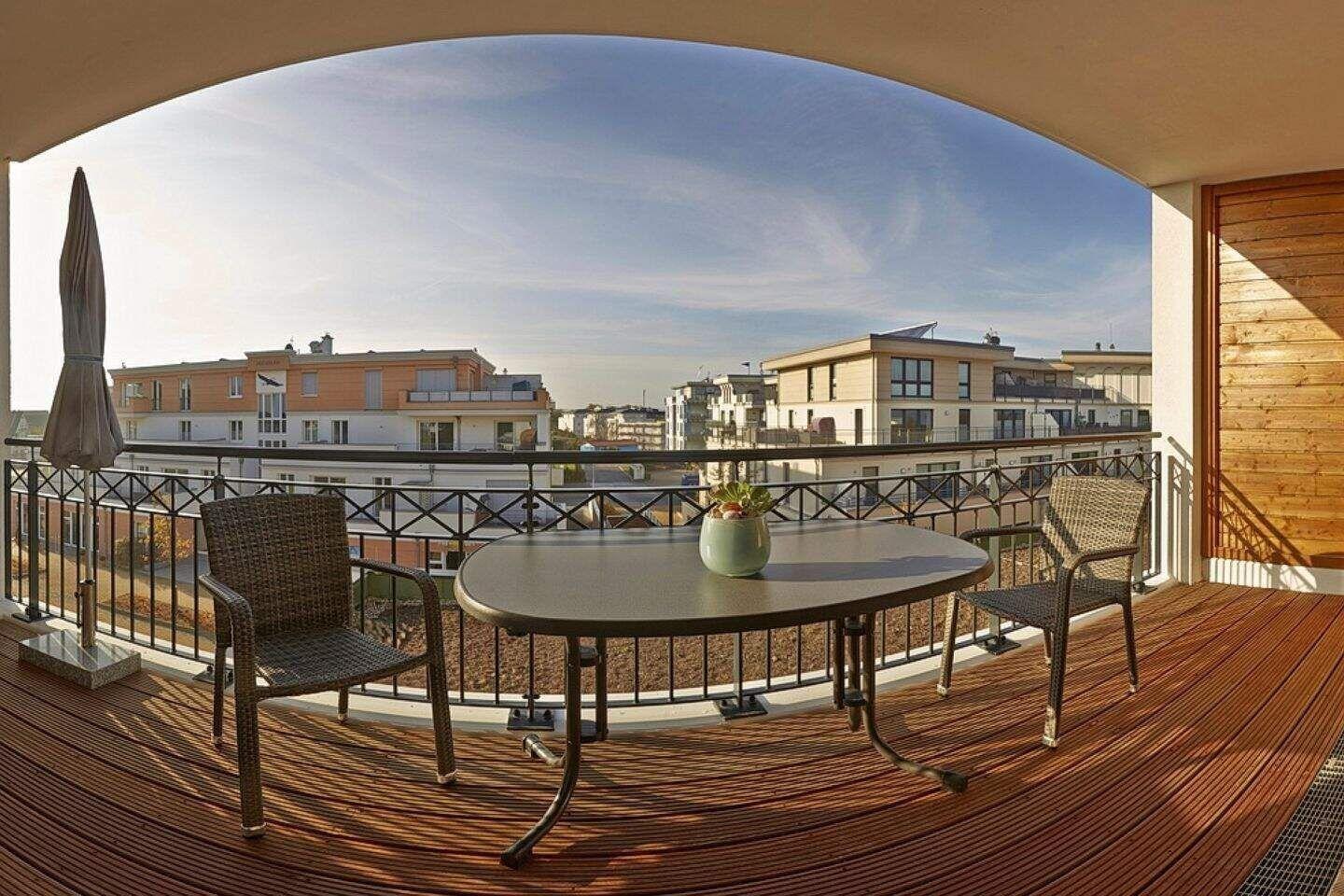 Von Ihrem überdachten Balkon mit Westausrichtung, haben Sie einen seitlich eingeschränkten Blick auf die Ostsee. Natürlich stehen Ihnen hier auch Terrassenmöbel zur Verfügung, sodass Sie hier Ihr Frühstück oder Ihr Abendessen bei einem malerischen Sonnenuntergang genießen können. Der überdachte Balkon ist sowohl vom Wohnzimmer, als auch vom Schlafzimmer aus begehbar. Die Waterkant Suites liegen direkt an der Promenade in Börgerende und somit direkt am Meer.