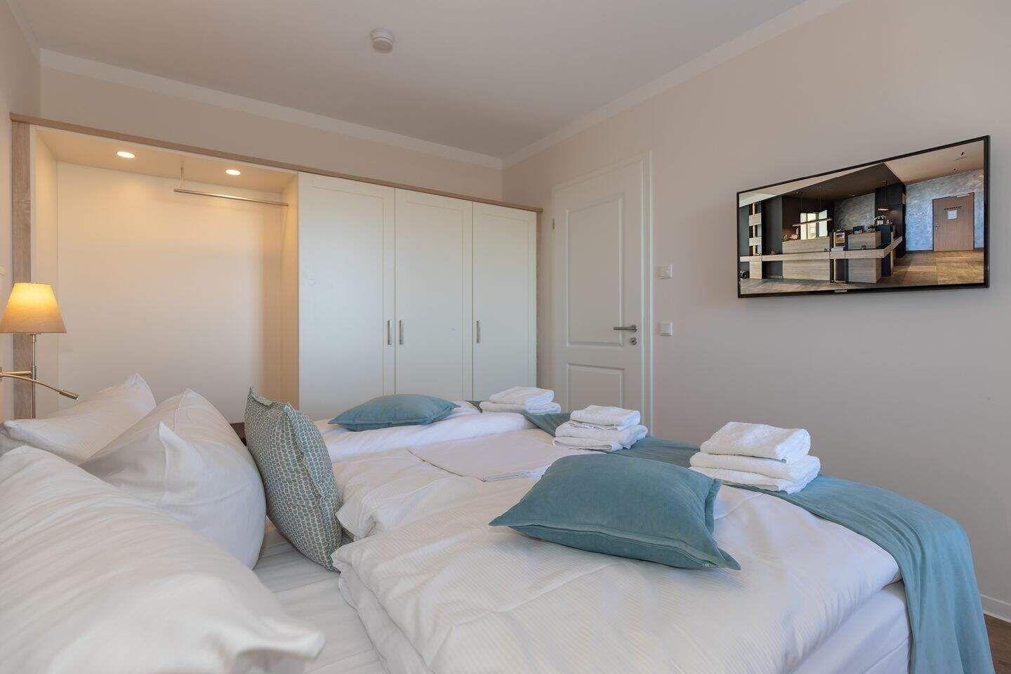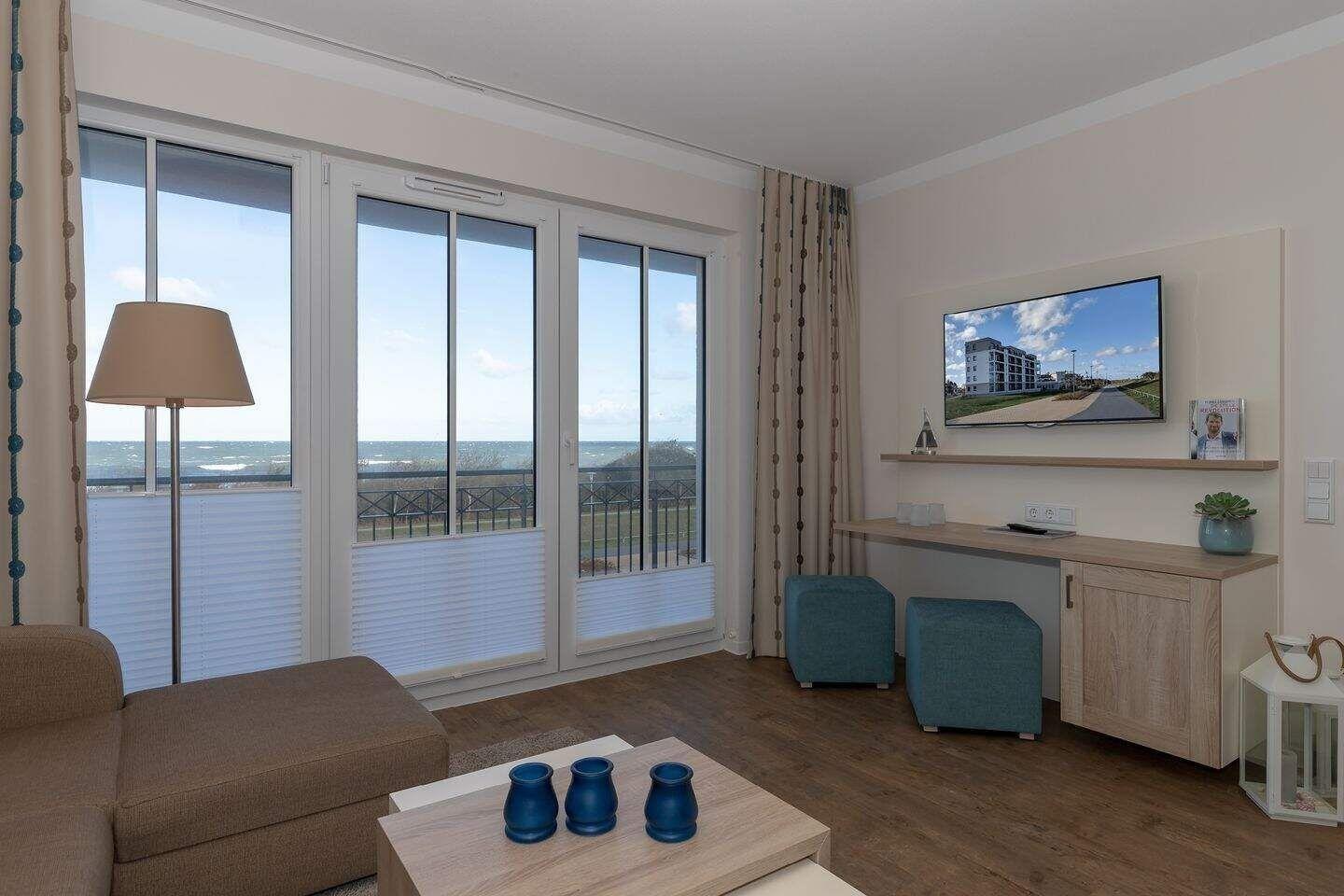 Die 77 m² große 3-Zimmer Suite ist für max. 5 Personen geeignet und befindet sich in nördlicher Lage mit Blick auf die Ostsee.