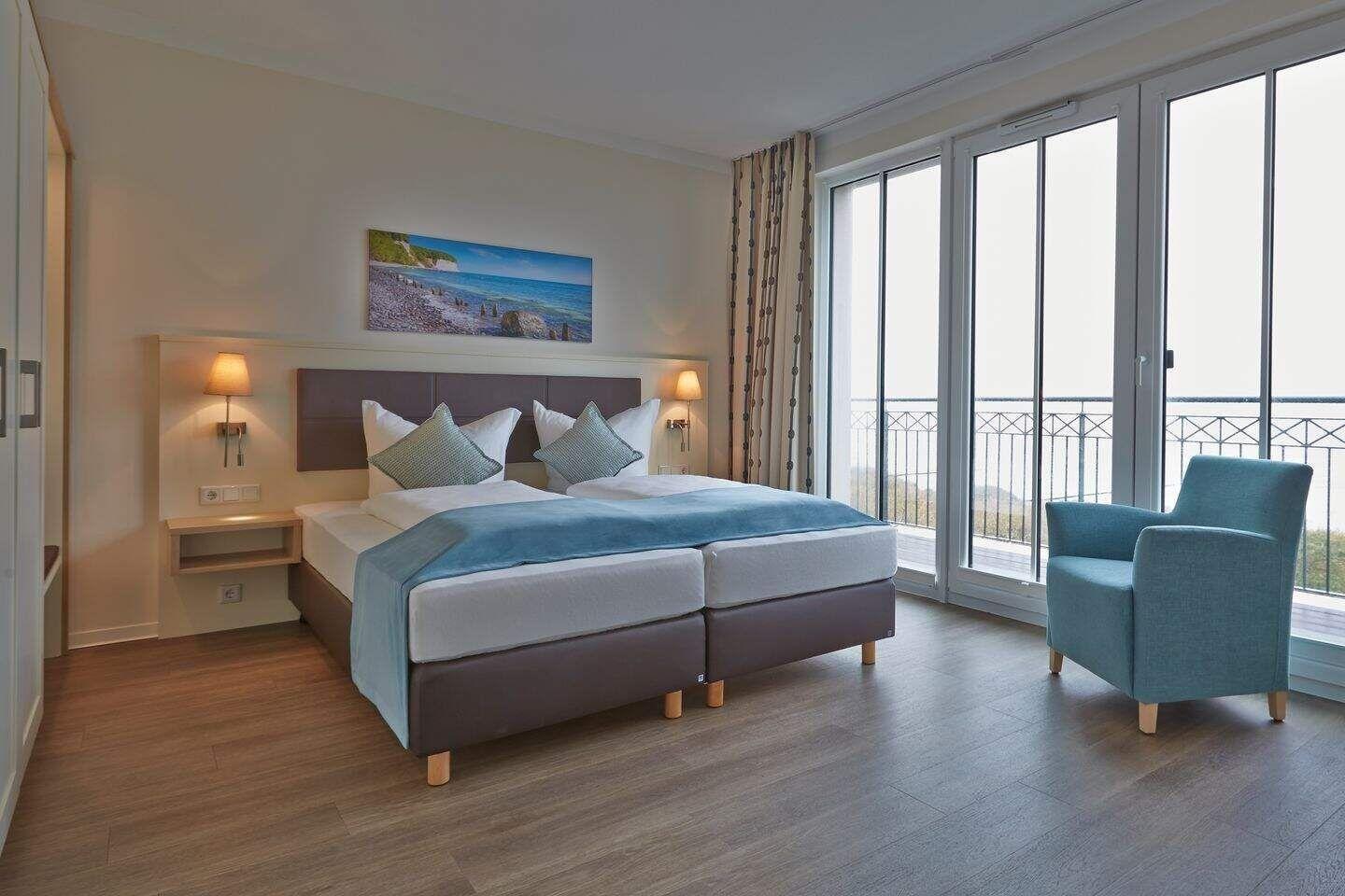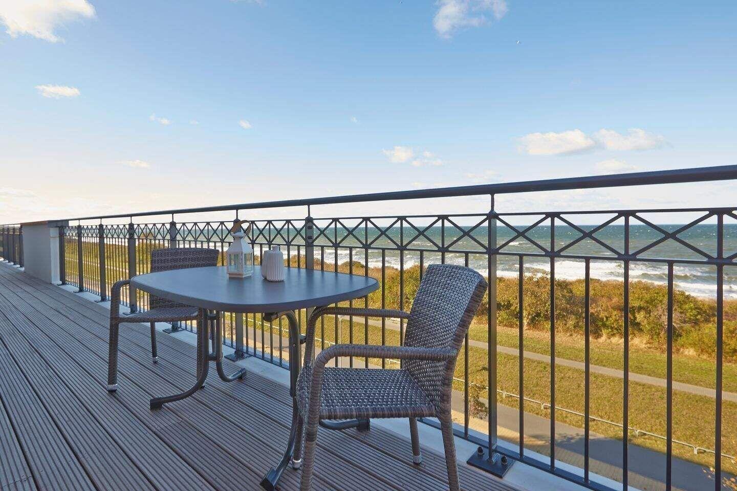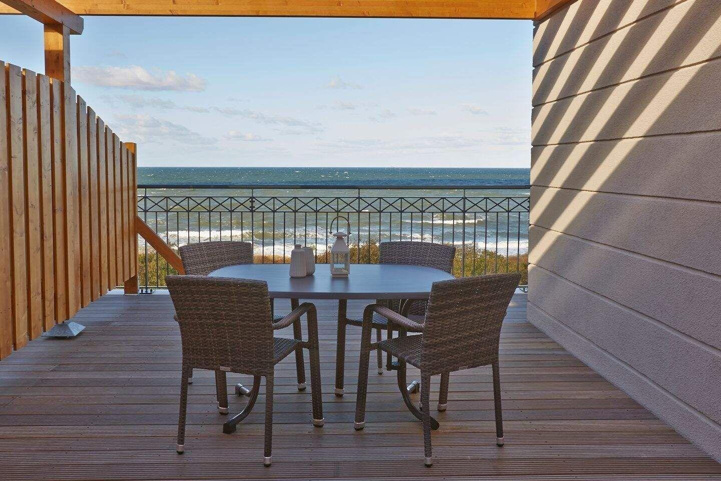 Die 111 m² große 3-Zimmer Penthouse-Suite ist für bis zu 6 Personen geeignet und bietet einen tollen Blick über die Ostsee.