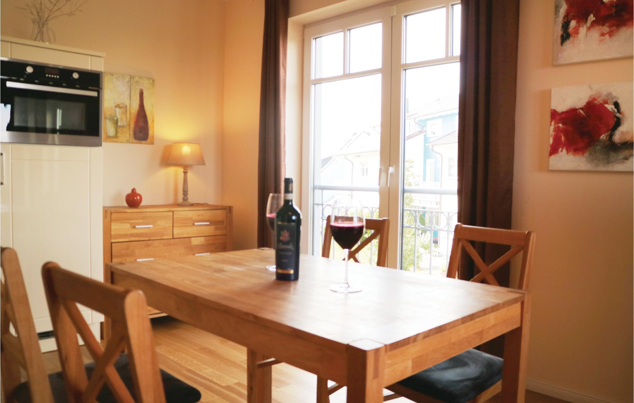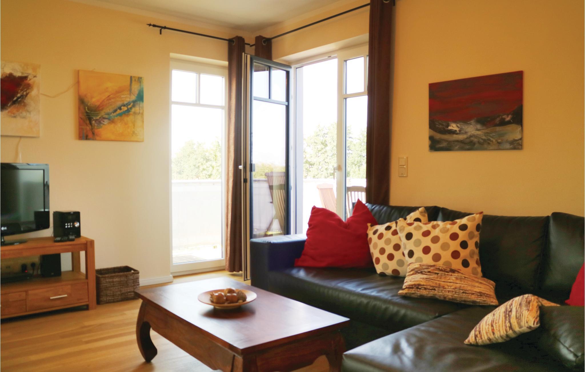 Die hochwertige Einrichtung überzeugt durch besondere Details wie Eichenholzfußböden, zahlreiche Originalbilder einer mecklenburger Künstlerin und einer modernen Einbauküche. Vom Wohn-Essbereich und Schlafzimmer, sowie den Balkonen ist der unverbaute Blick zur See ein Erlebnis. Eine Ausweichmöglichkeit befindet sich im Wohnbereich.