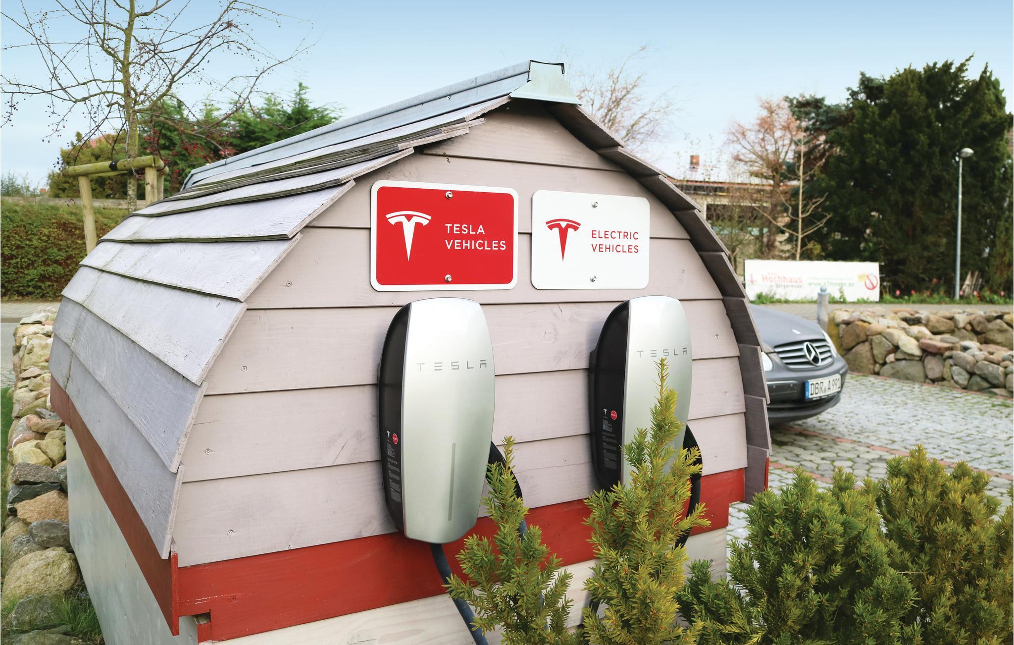 Für Fahrer von Elektroautos steht außerdem eine E-Tankstelle zur Verfügung. An die Ladestation können sowohl ein Tesla als auch andere Elektroautos angeschlossen werden.