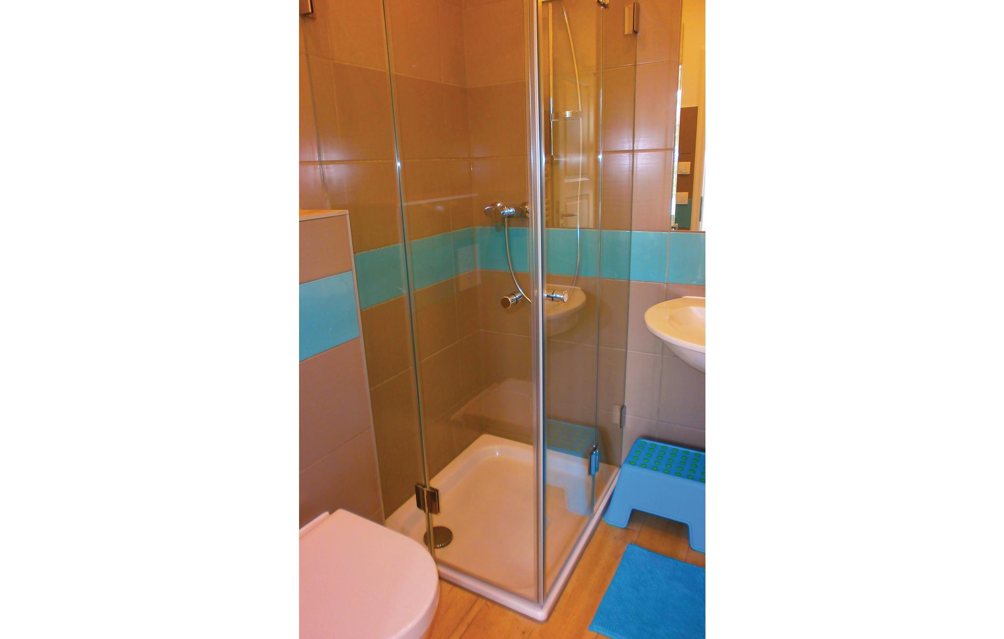 - WC mit warmem und kaltem Wasser, Dusche und Badewanne