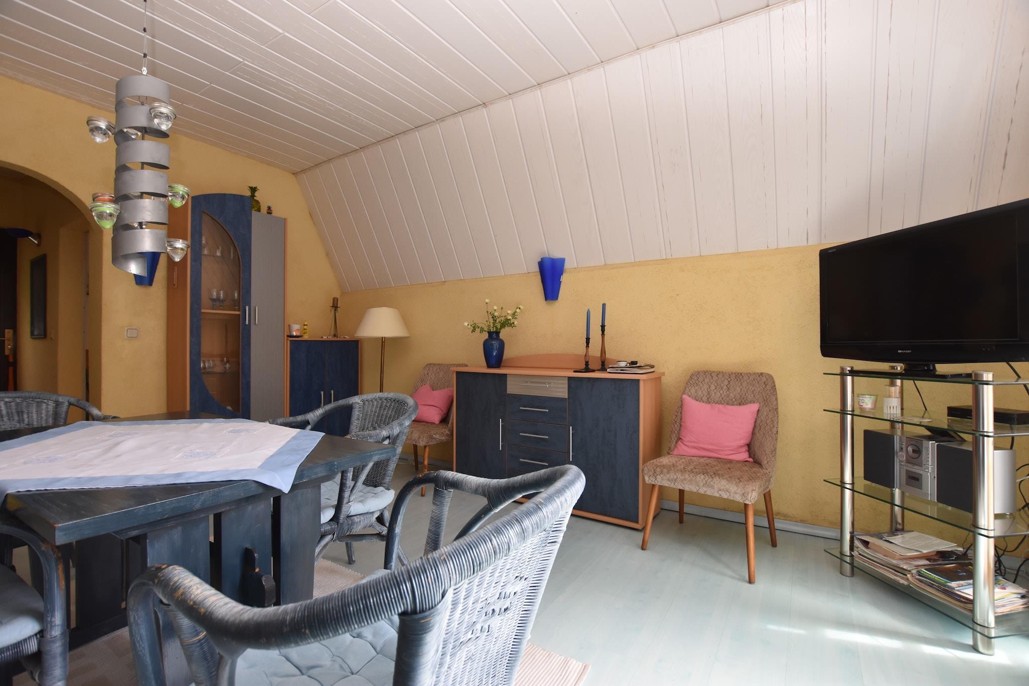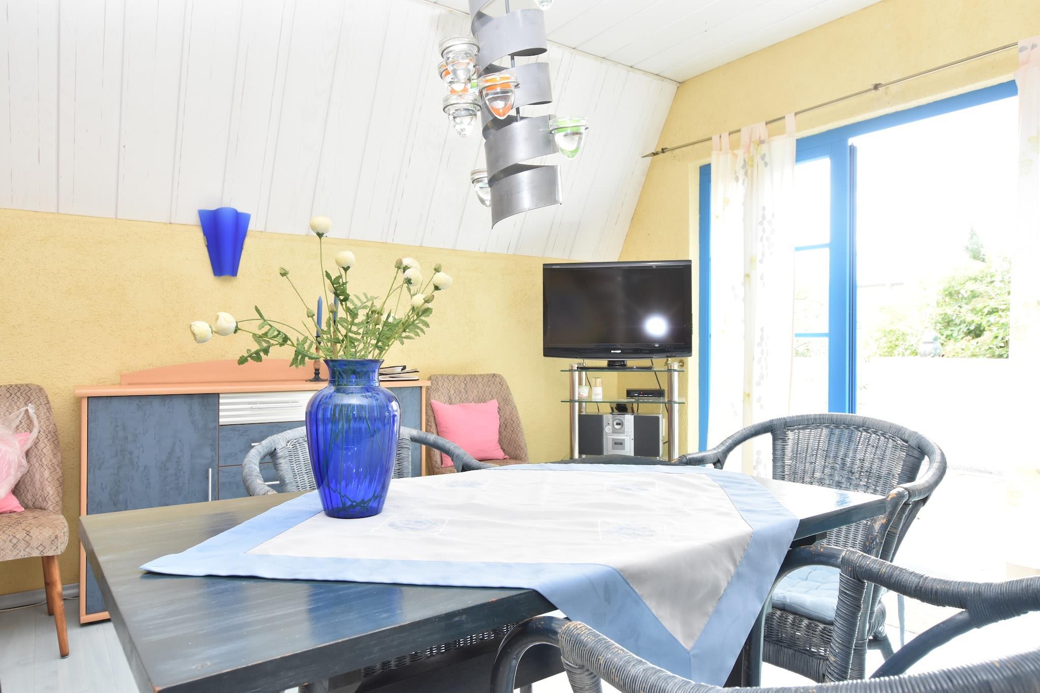 Parterre: (Kochnische(Kochherd(2 Kochplatten, elektrisch), Kaffeemaschine, Mikrowelle, Kühlschrank), Wohn/Esszimmer(TV(Satellit), Esstisch(4 Personen), Sitzecke, Radio), Badezimmer(Dusche, Waschbecken, Toilette, Föhn)) In der 1. Etage: (Schlafzimmer(2x Einzelbett(90 x 200 cm)), Galerieschlafzimmer(2x Schlafcouch 1 Pers.), Heizung(elektrisch)) Terrasse, Garten, Gartenmöbel, Grill, Parkplatz