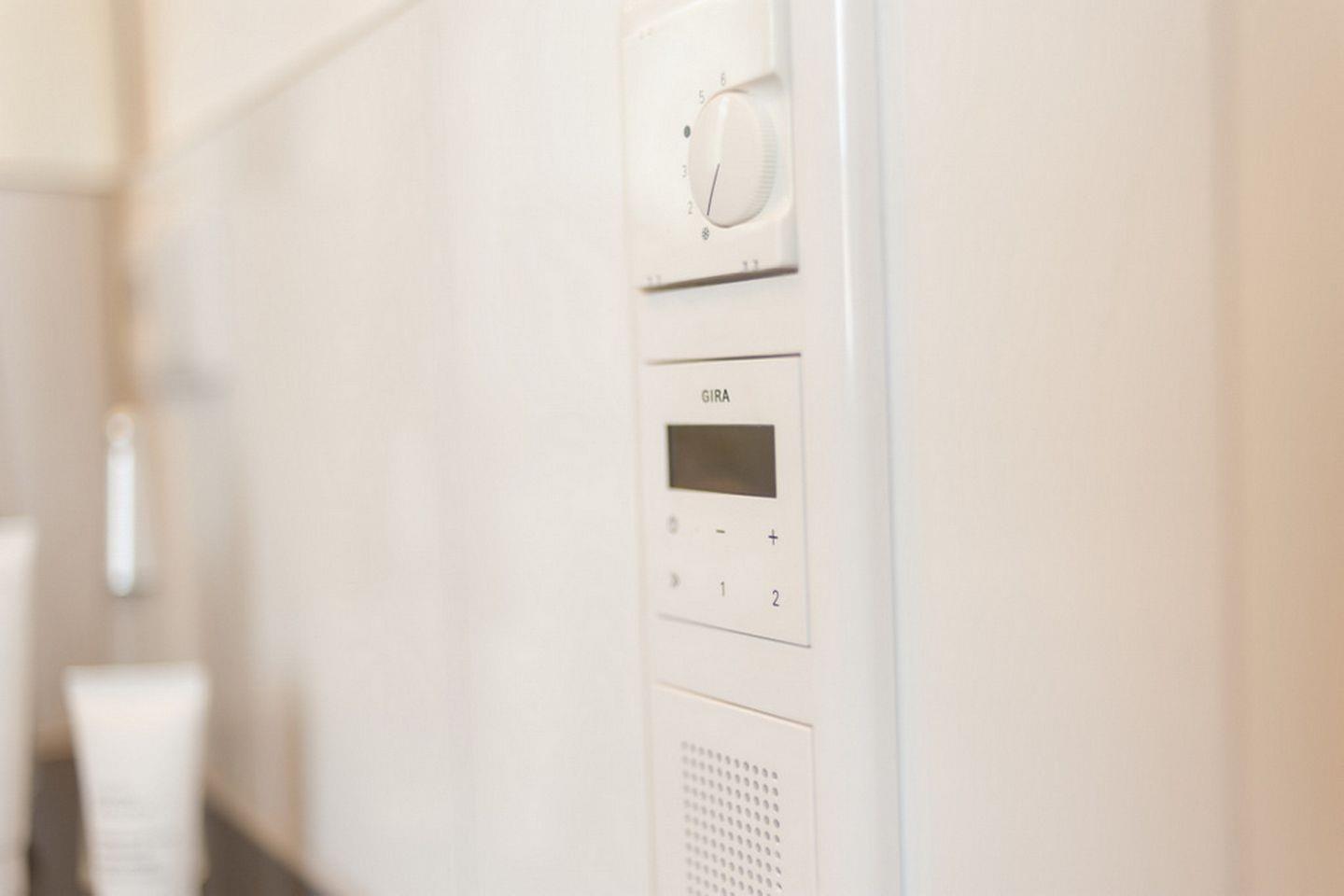 Zum gefliesten Tageslichtbad mit WC und ebenerdiger Dusche gehören auch ein moderner Waschtisch sowie Handtuchtrockner und Radio. Der Bodenbelag im Wohnbereich, Küche, Flur und Schlafzimmer ist Designbelag. Alle Räume sind mit einer Fußbodenheizung versehen. Es handelt sich um eine Nichtraucher-Wohnung. Haustiere sind nicht erlaubt.