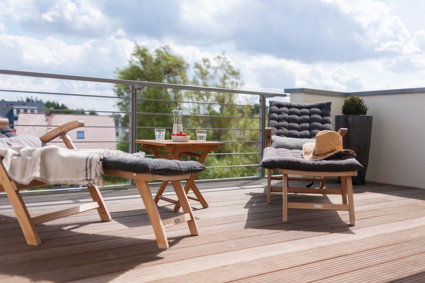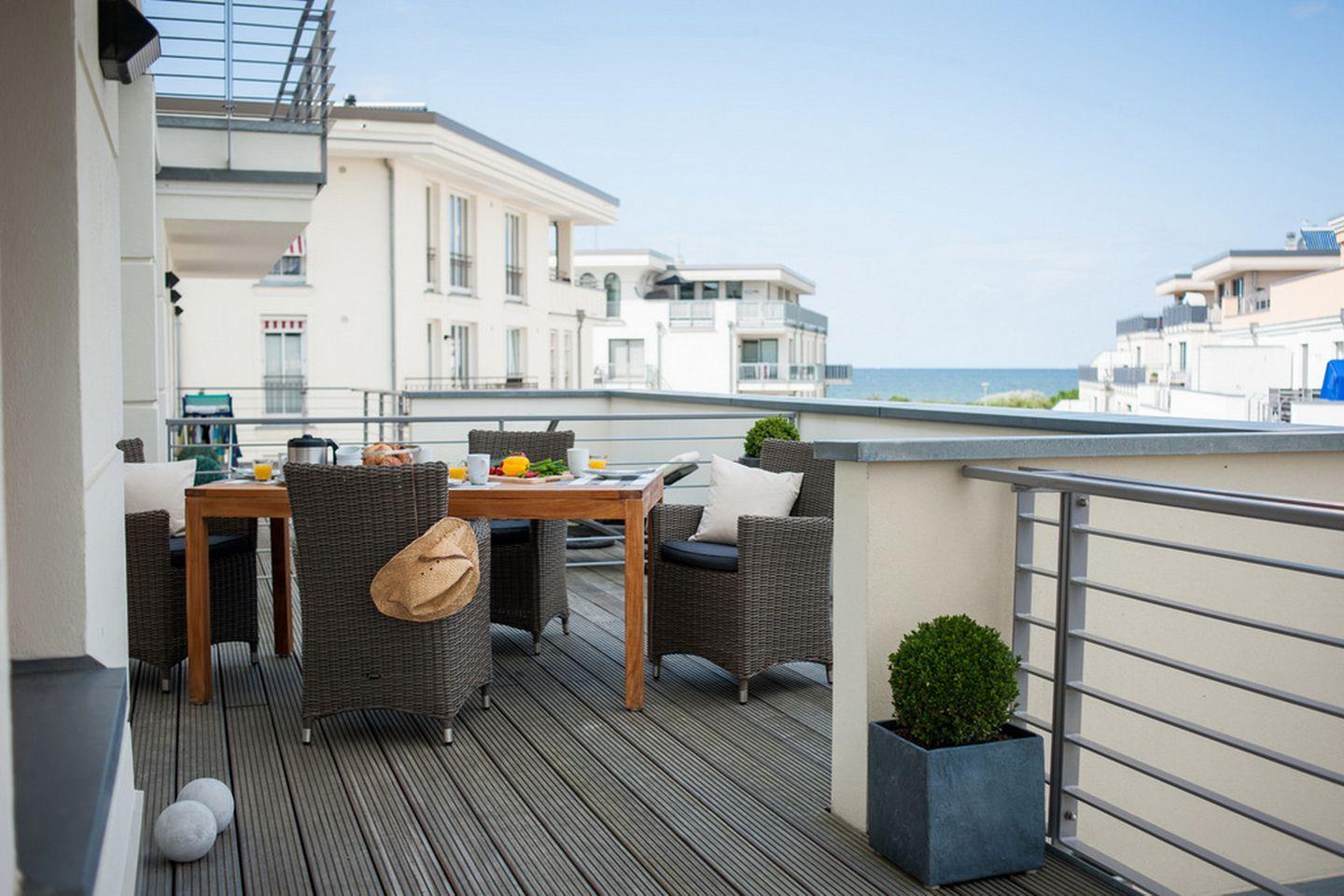 Exklusive Ferienwohnung mit Dachterrasse und Ostseeblick in Börgerende, nur 50 m vom Strand entfernt.