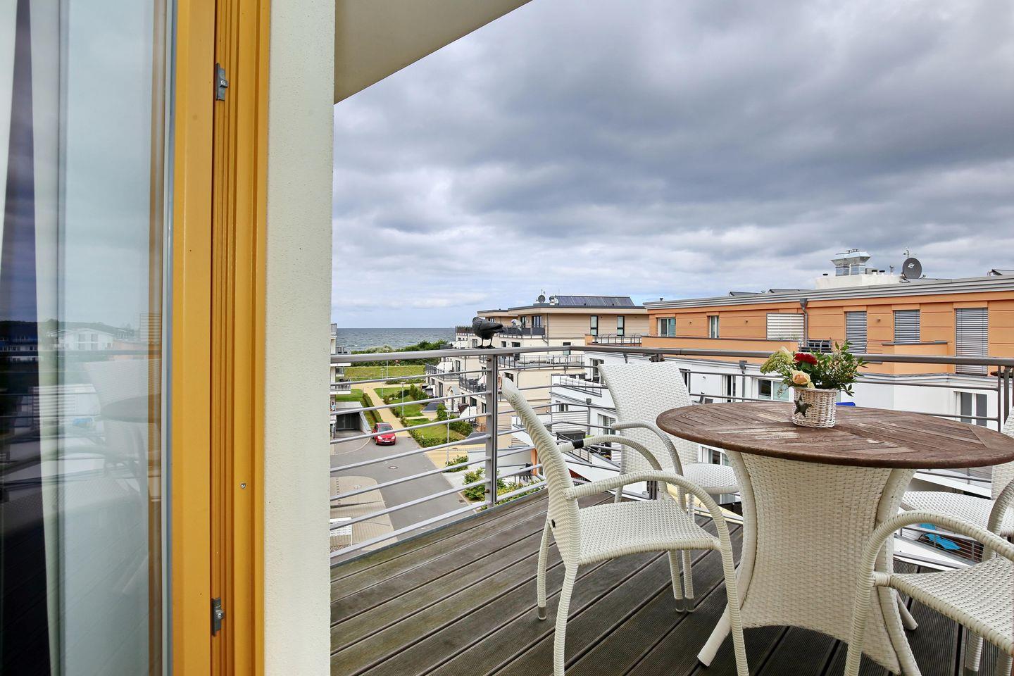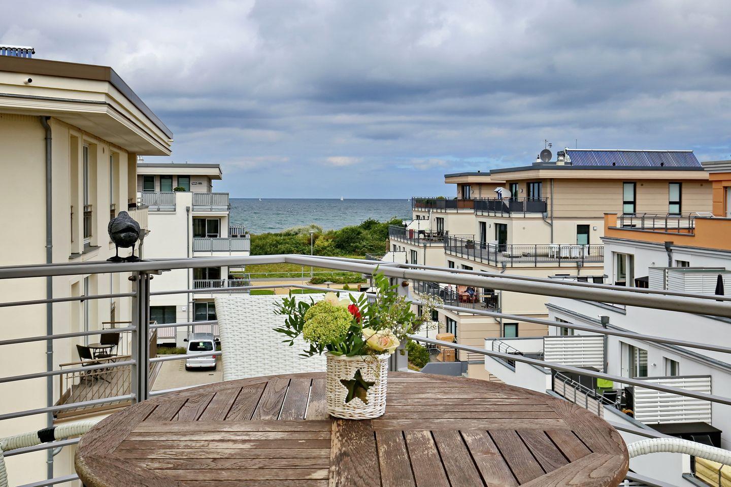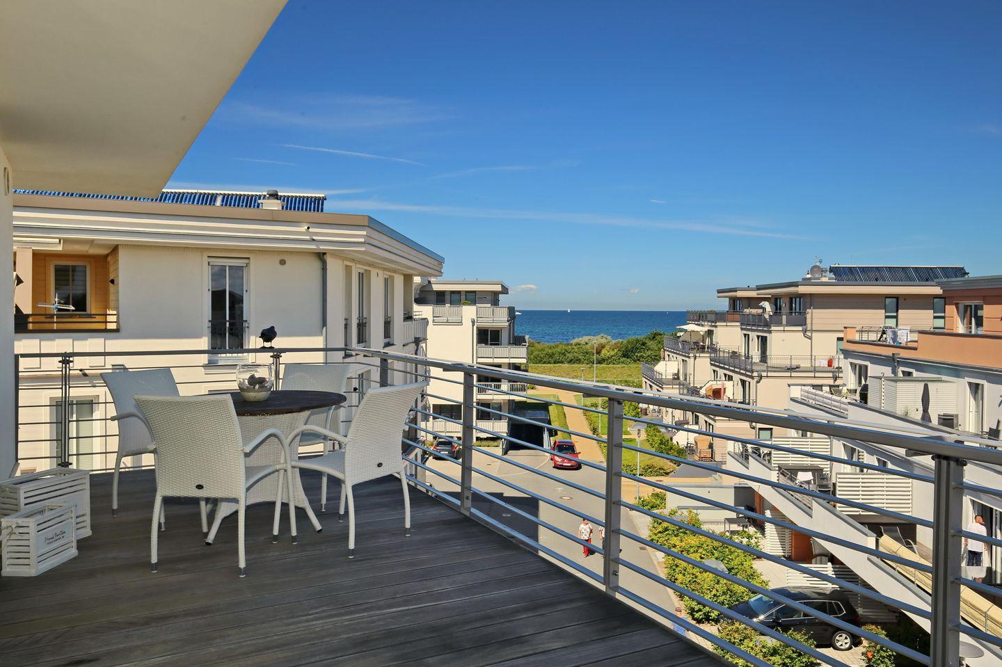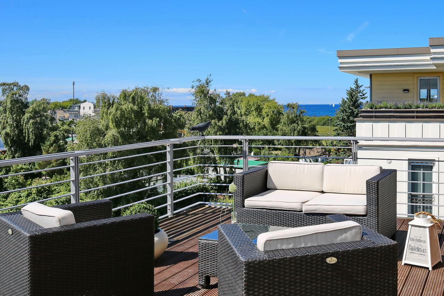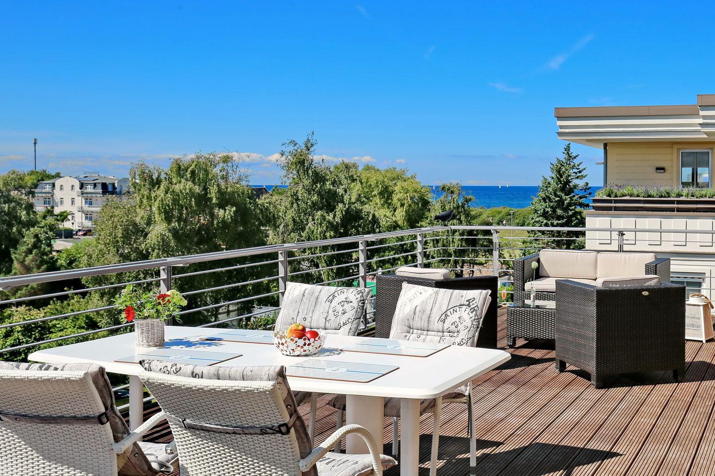 Penthouse Ferienwohnung mit Meerblick, großer Dachterrasse und Balkon nur 50 m vom Ostseestrand entfernt.