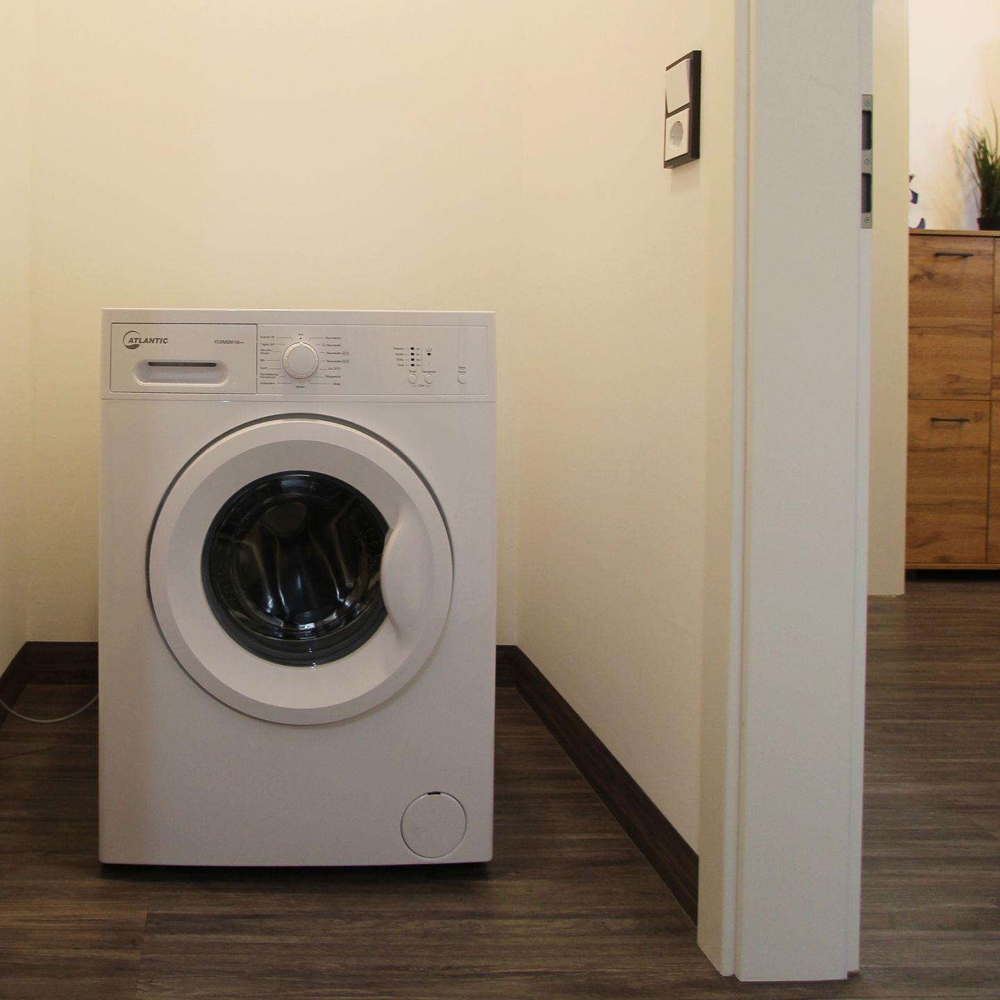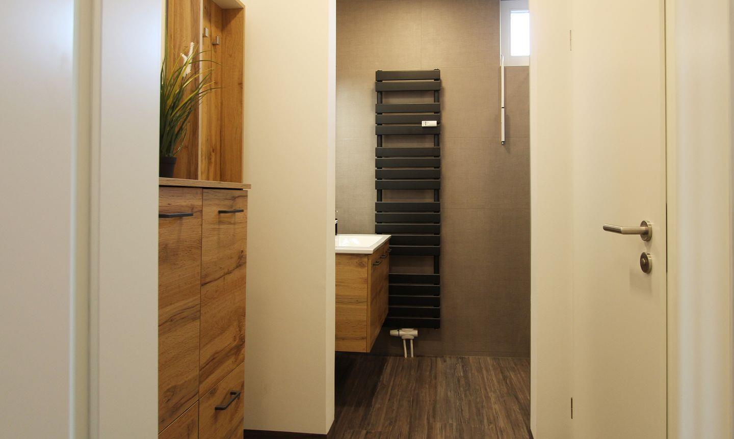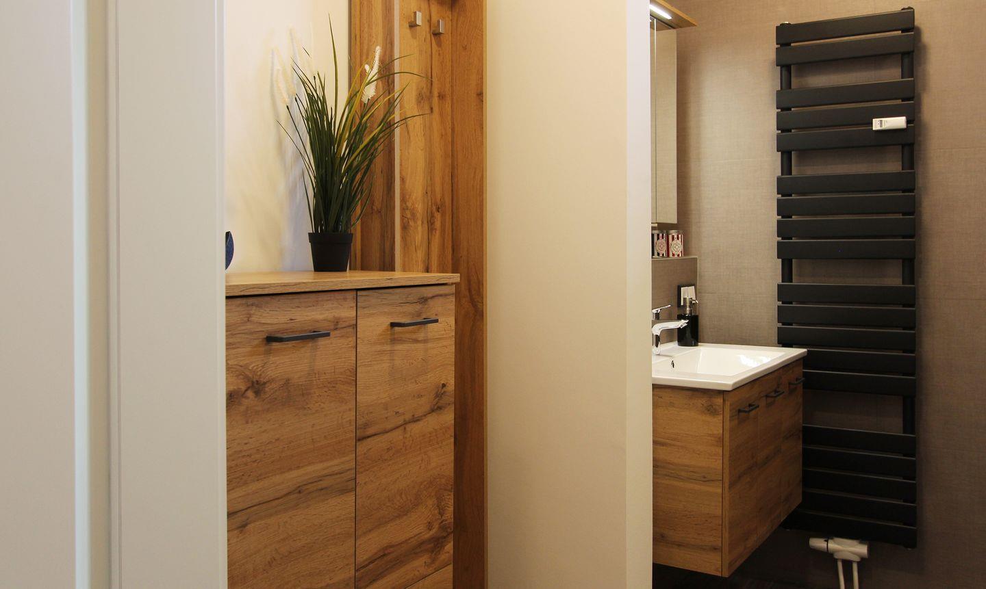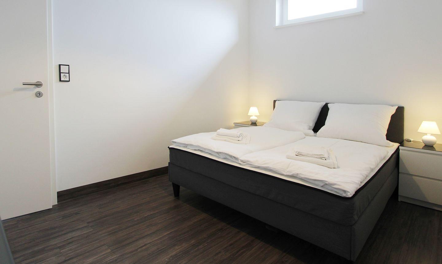 Wohnbereich mit großem TV, 2 Sofas und offener vollaugestatteter Küche sowie Essbereich, Küche mit Mikrowelle, Ceranfeld, Backofen, Geschirrspüler, Kühlschrank mit Gefrierfach, 2 Schlafzimmer mit Doppelbett, Kinderbett und Hochstuhl, Bad mit großer ebenerdiger Dusche, Oberlicht und separatem WC, separates 2. WC mit Waschmaschine, 2 Stellplätze, Terrasse mit Sitzmöglichkeiten. Die Wohnung hat kein Internet.