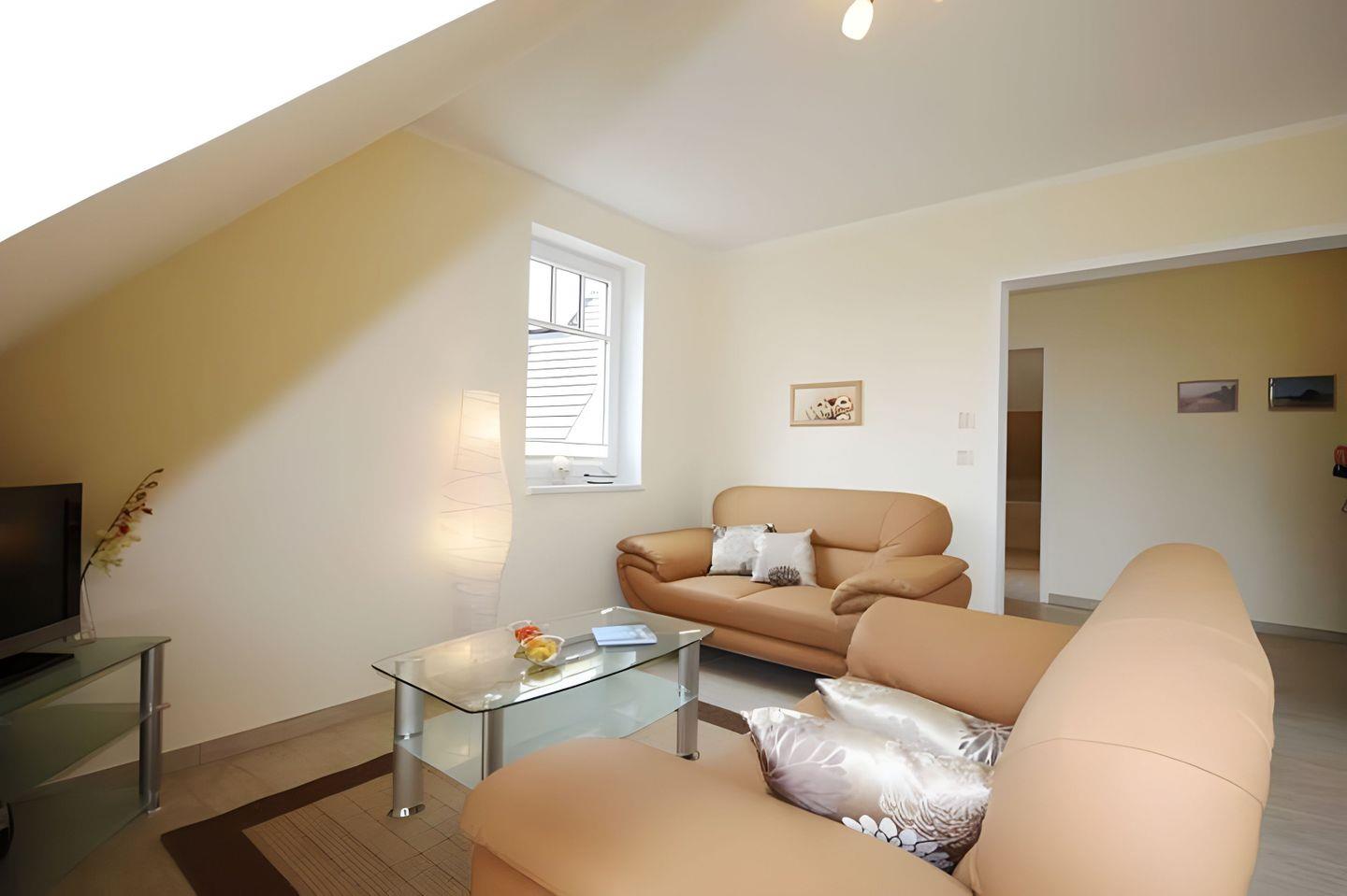 STRANDNAHE, FAMILIENFREUNDLICH AUSGESTATTETE 3-RAUM FERIENWOHNUNG (LEE), FÜR MAX. 4 PERSONEN, 2 SCHLAFZIMMER, BALKON UND SAUNABLOCKHAUS IM 1. OG.