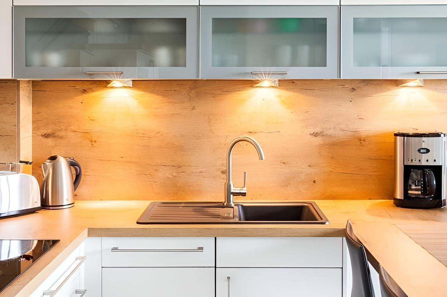Küchengeräten wie Kaffeemaschine, Toaster, Wasserkocher, Stabmixer und den