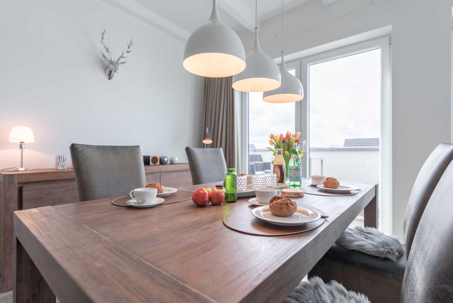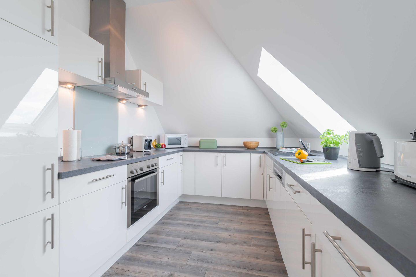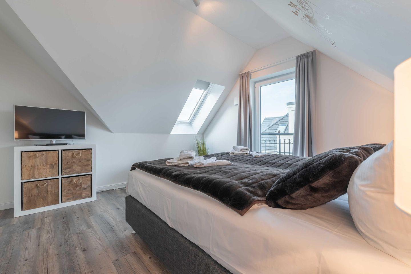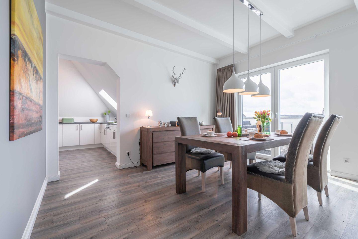 Dachgeschoss der Residenz Seestern. Im Wohnraum finden Sie eine zweiteilige
