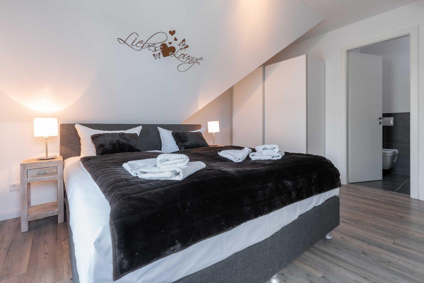vorhanden. Das modern eingerichtete Schlafzimmer mit dem großzügigen