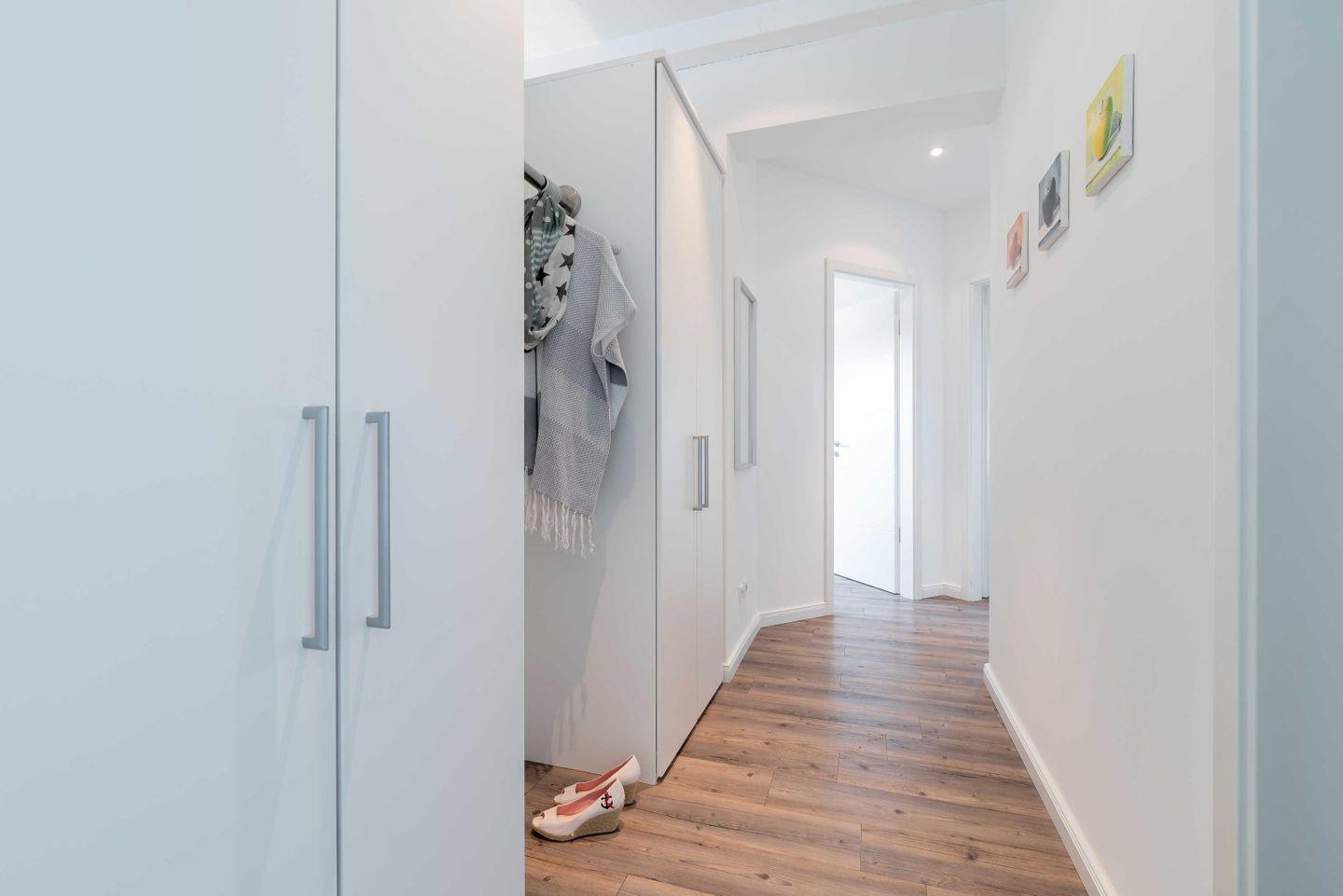 0,90 m) sowie ein kleiner Schrank. Das zweite Duschbad ist vom Flur aus zu