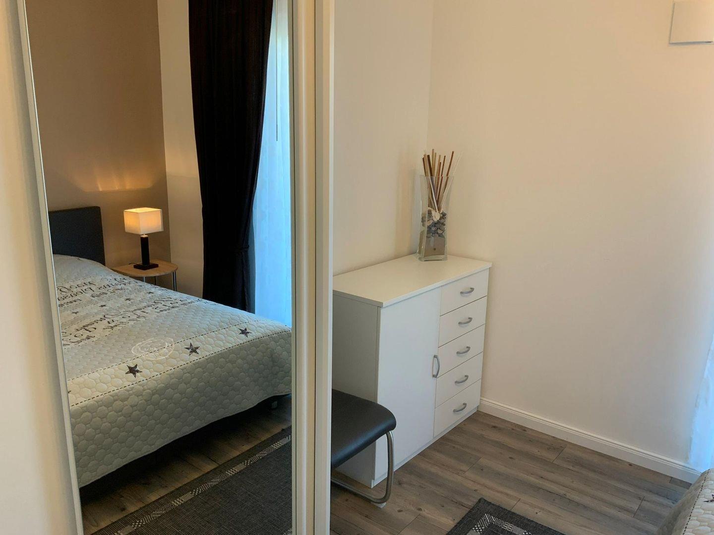 Schiebetürenschrank. Das zweite Schlafzimmer ist mit einem Etagenbett und
