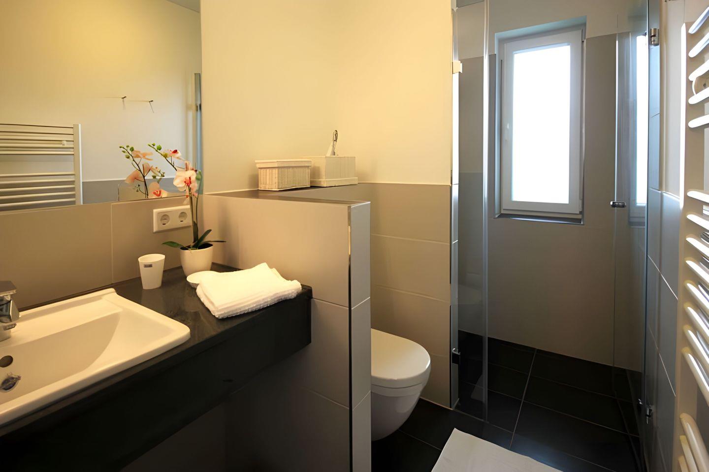 Die Residenz Seestern WE 11 in Börgerende bietet auf ca. 67 m² komfortablen Wohnraum für bis zu fünf Personen. Sie verfügt über zwei Schlafzimmer, ein Badezimmer mit zusätzlichem Gäste-WC sowie eine offene Küche zum Wohnzimmer. Zu den Ausstattungsmerkmalen zählen eine Terrasse mit Gartenblick, Gartenmöbel, ein kostenloser Privatparkplatz sowie ein gemeinschaftlich nutzbarer Waschraum.