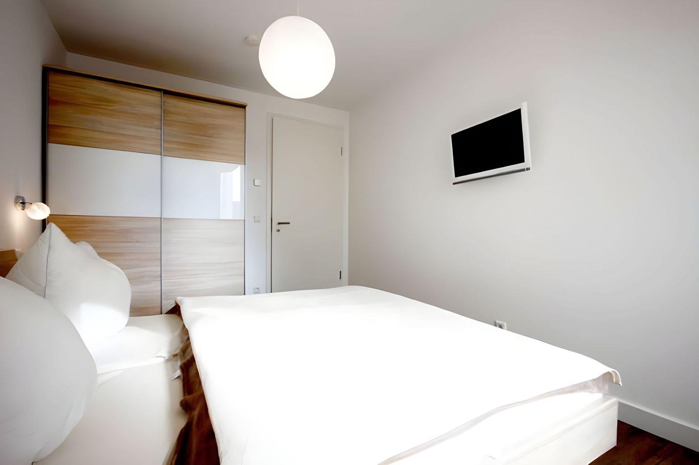 Der SCHLAFBEREICH wurde mit großem Doppelbett, geräumigem Kleiderschrank und einem weiteren Flatscreen-TV ausgestattet. Im eleganten BAD finden Sie eine Dusche und einen großen Waschtisch mit durchgehendem Spiegel. Auf der nach Süd-West ausgerichteten TERRASSE stehen ein Tisch, zwei Stühle und zwei Hocker. Die integrierte Sauna ist vom Wohnbereich zugänglich und wird über Münzeinwurf betrieben (2,00 € Stücke / 4,00 € für 40 min). Das kostenfreie WLAN in der Unterkunft ist ausschließlich für die Verwendung von Social Media und den Austausch von Bildern mit Familie und Freunden gedacht. Die Nutzung zum Streamen von Filmen ist nicht vorgesehen.