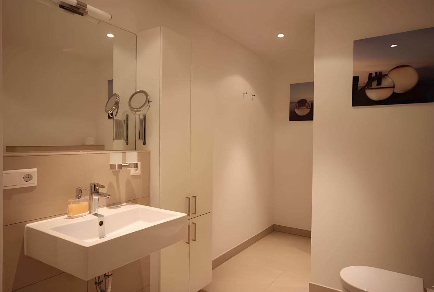 BEIDE DUSCHBÄDER bieten bodengleiche Duschen und Waschtisch mit Spiegel. Die SAUNA für eine Schwitzkur, ist vom Wohnbereich aus begehbar. Ein kostenfreier PKW- STELLPLATZ für Ihre Wohnung befindet sich in der TIEFGARAGE. Bitte beachten Sie die DURCHFAHRTSHÖHE von max. 1,90 m! Bei Überschreitung der maximalen Durchfahrtshöhe, besteht die Möglichkeit auf einen kostenpflichtigen Parkplatz in unmittelbarer Nähe auszuweichen. Der im Gebäude installierte Aufzug erleichtert den Transport der mitgebrachten Koffer. Und in der Tiefgarage befindet sich auch der ABSCHLIESSBARE FAHRRADRAUM.