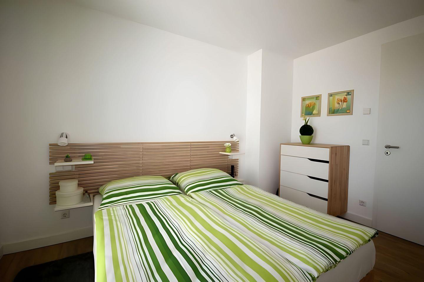 Im SCHLAFZIMMER finden Sie dann ein Doppelbett (1,60 x 2,00 m) mit eingebautem Bettkasten. Der zweitürige Kleiderschrank und eine Kommode bieten genügend Stauraum für die Unterbringung der Bekleidung. Das DUSCHBAD besitzt einen fußbodengleichen Duscheinstieg. Weiterhin einen Waschtisch und einen Handtuchtrockner. Den schönen großen BALKON erreichen Sie sowohl vom Wohn- als auch vom Schlafzimmer aus. Der zur Wohnung gehörende und kostenfreie PKW-STELLPLATZ, ist ca. 30 m vom Objekt entfernt. Für die Fahrräder ist in der TIEFGARAGE ein separater ABSCHLIESSBARER FAHRRADRAUM eingerichtet. Hier finden Sie auch einen Aufzug, um Ihr Urlaubsgepäck entspannt in die Ferienwohnung zu befördern. Des Weiteren stehen im Waschraum im Erdgeschoss, eine Waschmaschine und ein Wäschetrockner für Gäste zur Verfügung. Diese sind kostenpflichtig. Halten Sie 50 Cent Münzen für die Nutzung bereit.