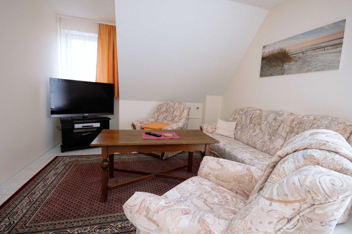 35 x 55 cm) und ein Kinderhochstuhl bereit. Im großen Wohnzimmer lässt es sich