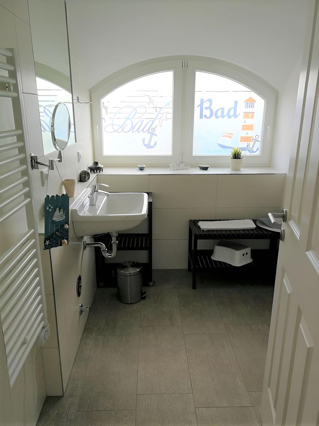 Im Erdgeschoss befindet sich das erste Bad inkl. Dusche, Fön und