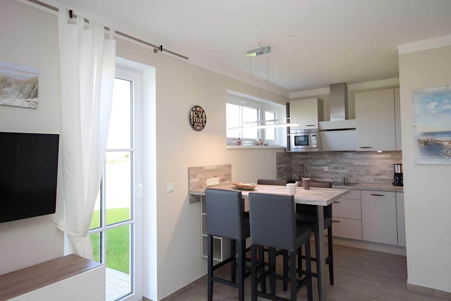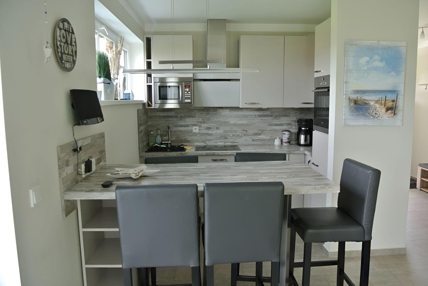 eigenen Wünschen zu kochen. Im Küchenbereich rundet ein Hochtisch inkl. vier