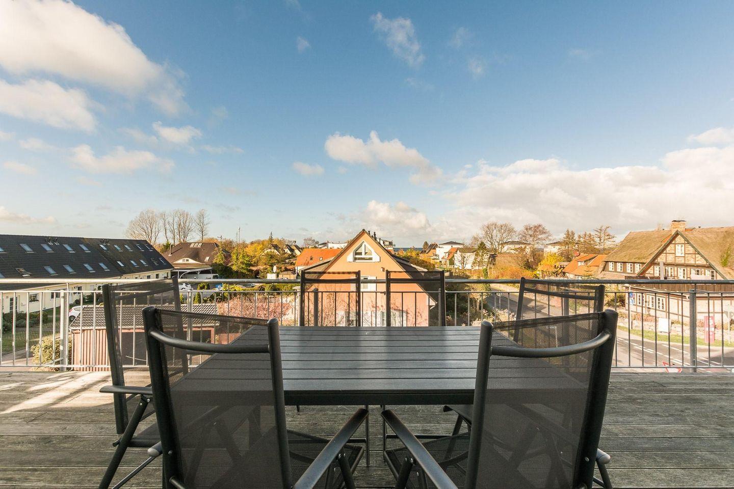 vier Personen mit einer 28 m² Dachterrasse mit einem tollen Blick auf die Ostsee