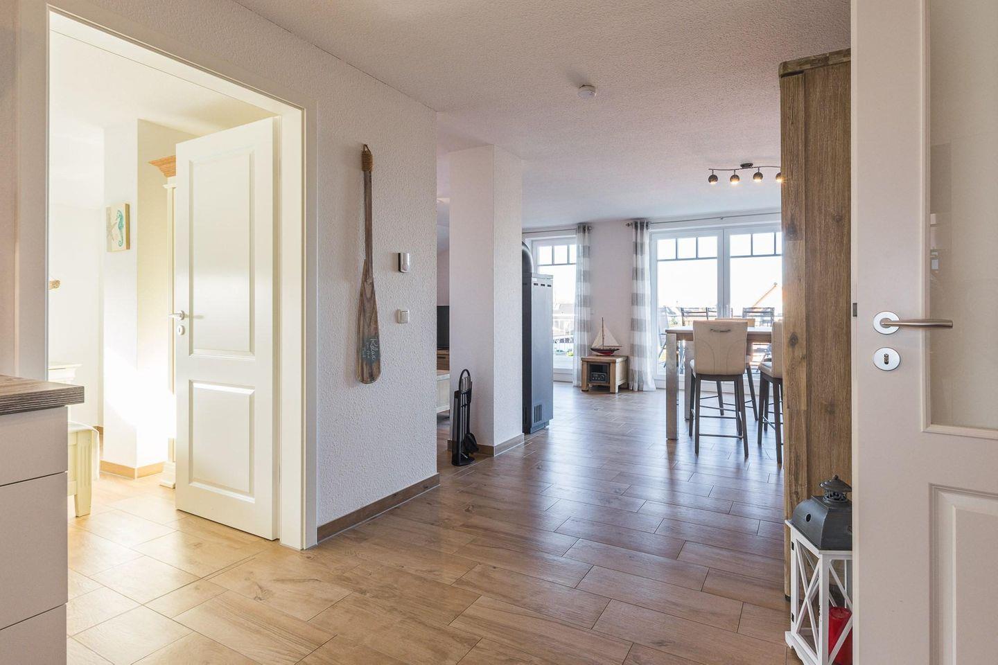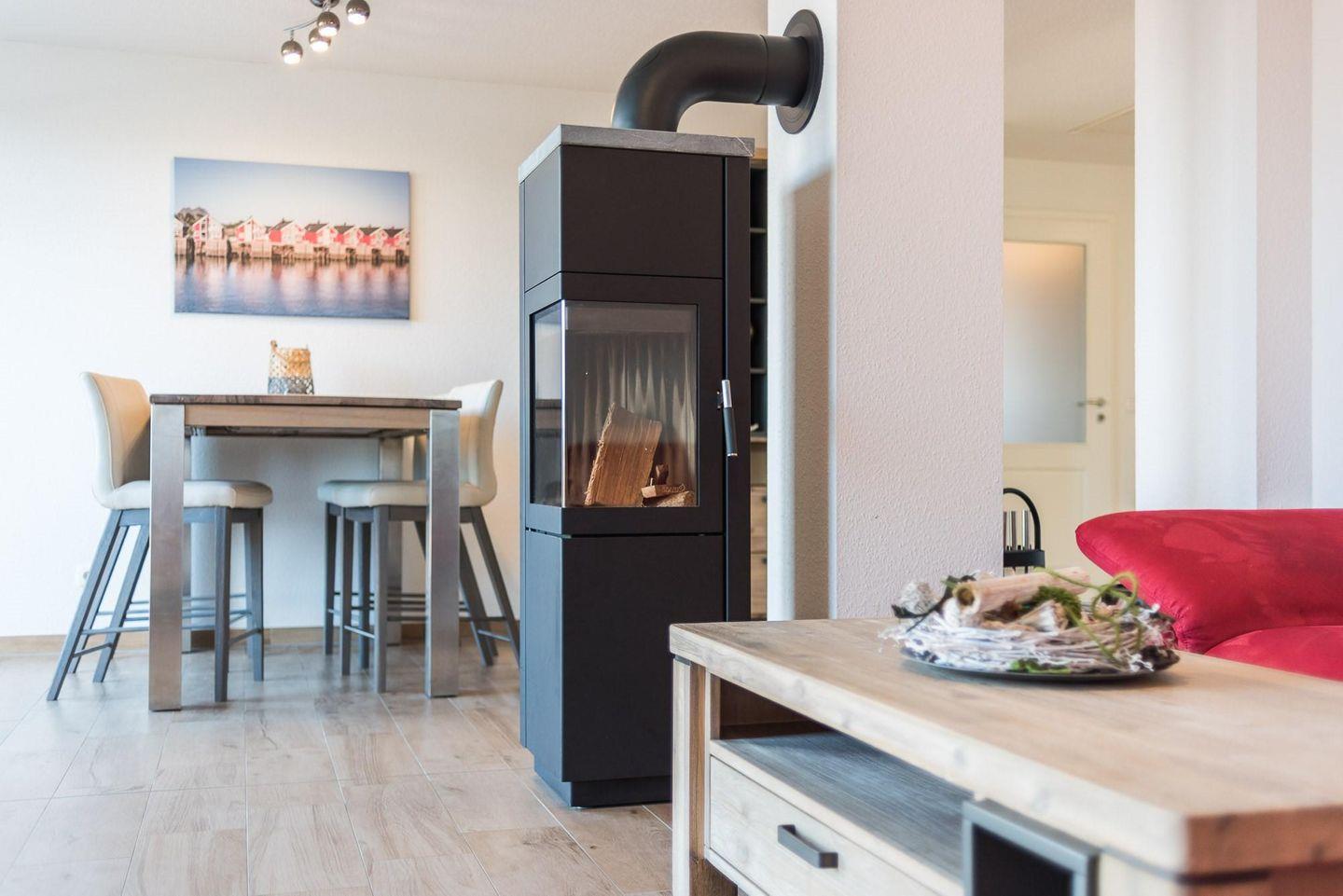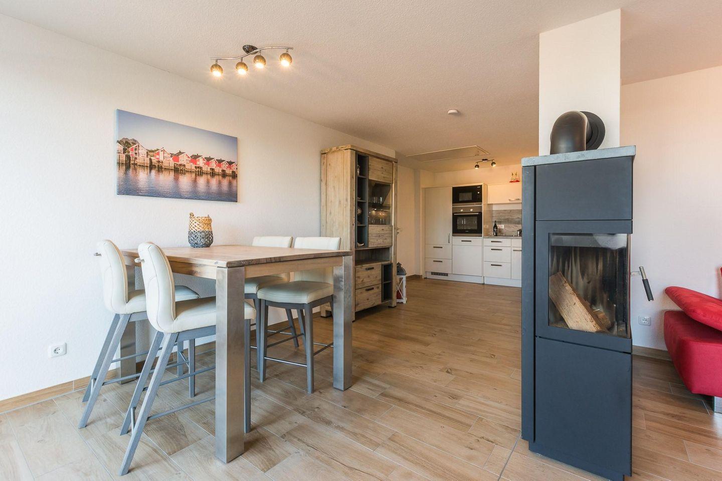 Moderne Ferienwohnung mit Meerblick, Terrasse, Kamin und WLAN in Börgerende, nur 200 Meter vom Strand entfernt.