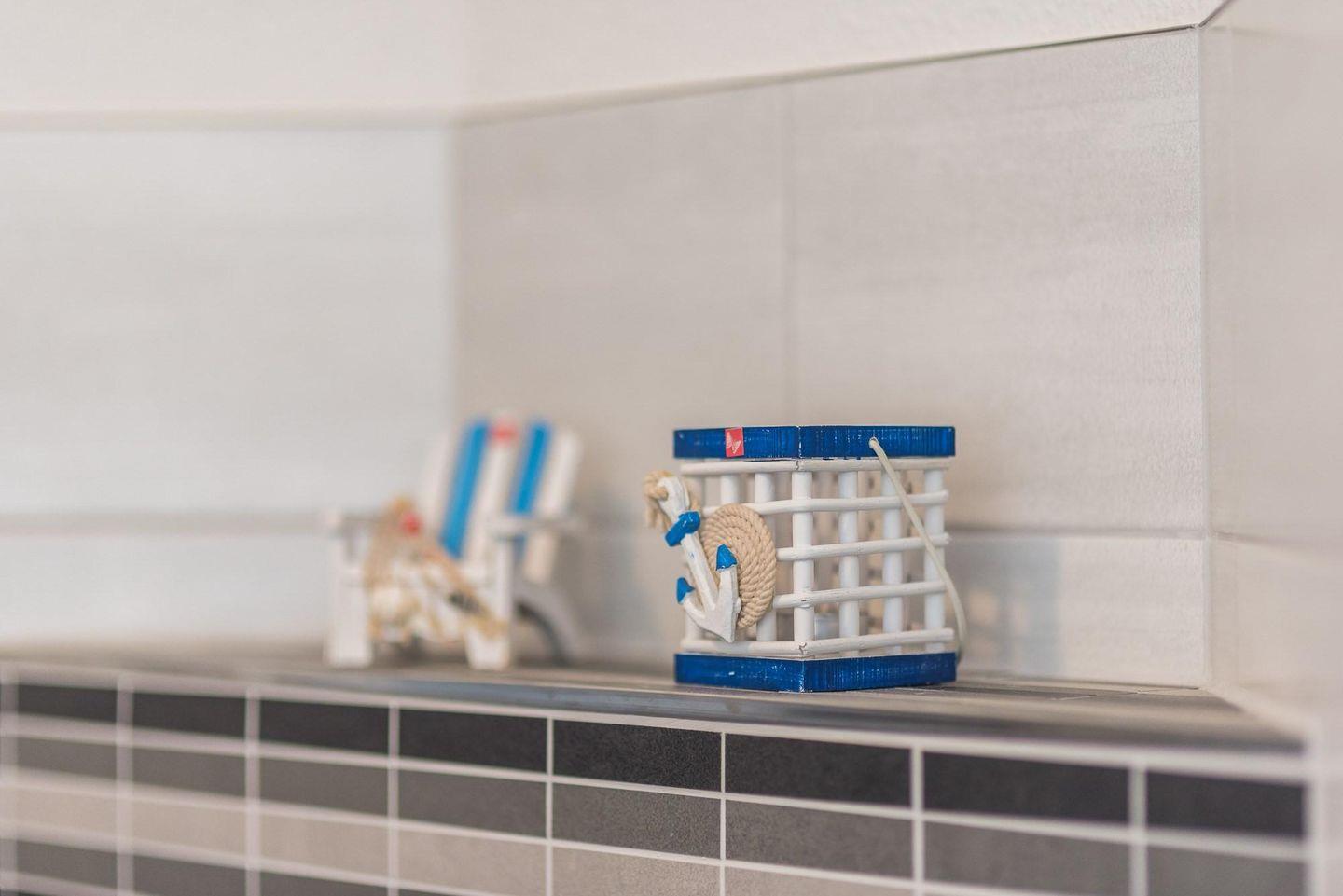Kühlschrank. Das Badezimmer überzeugt mit einer ebenerdigen geräumigen Dusche.