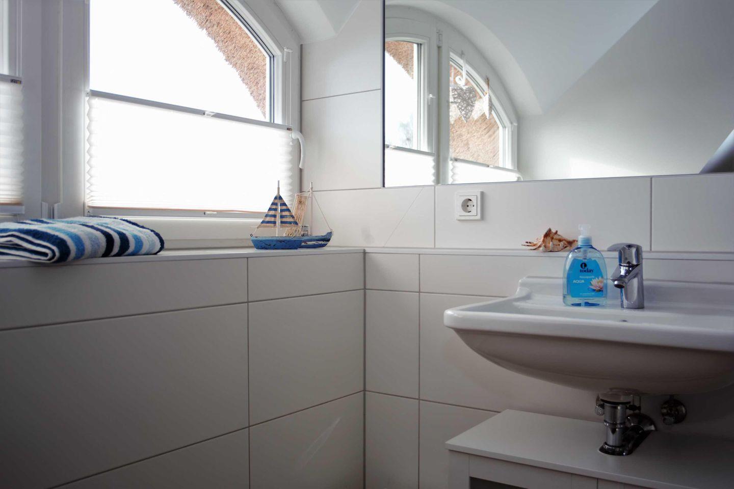 Das Fußboden beheizte Reetdachhaus erstreckt sich über zwei Etagen, welche über eine wunderschöne, im Wohnbereich integrierte, gewendelte Treppe verbunden sind. Die liebevoll, hochwertig eingerichtete Doppelhaushälfte bietet Platz für vier Erwachsene und zwei Kinder bis 16 Jahre. Zwei Doppelbetten sowie zwei ausklappbare Schlafsessel mit einer Liegefläche von 80 x 195 cm stehen zu Ihrer Verfügung.