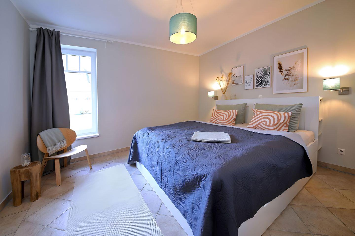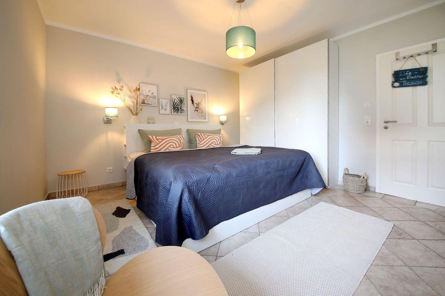 Das große, ERSTE SCHLAFZIMMER ist mit einem Doppelbett und Kleiderschrank eingerichtet. Im ZWEITEN kleineren SCHLAFZIMMER befindet sich ein Bett mit Ausziehfunktion für eine zweite Person. Ein KINDERREISEBETT und ein KINDERHOCHSTUHL stehen KOSTENFREI zur Verfügung. Das BADEZIMMER ist mit einer ebenerdigen begehbaren Dusche, WC und Föhn ausgestattet.