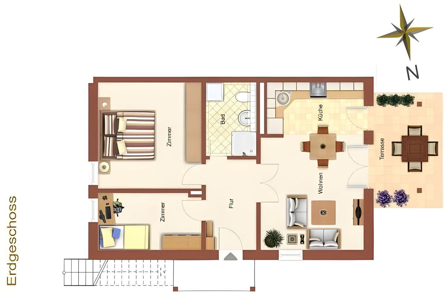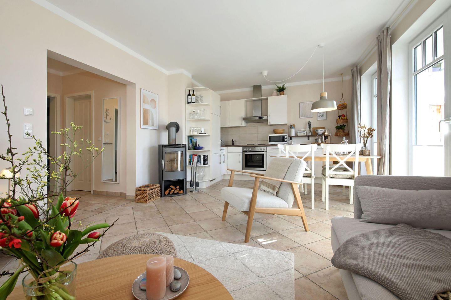 OSTSEENAHE 3-RAUM-FERIENWOHNUNG "CARPE DIEM" FÜR MAX. 4 PERSONEN, 2 SCHLAFZIMMERN, KAMINOFEN UND TERRASSE IM EG