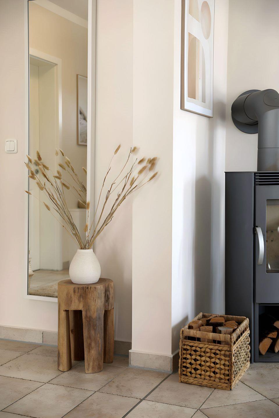 Eine Fußbodenheizung sorgt, zusammen mit dem Kamin, auch in den kälteren Jahreszeiten für wohlige Wärme in allen Räumen.